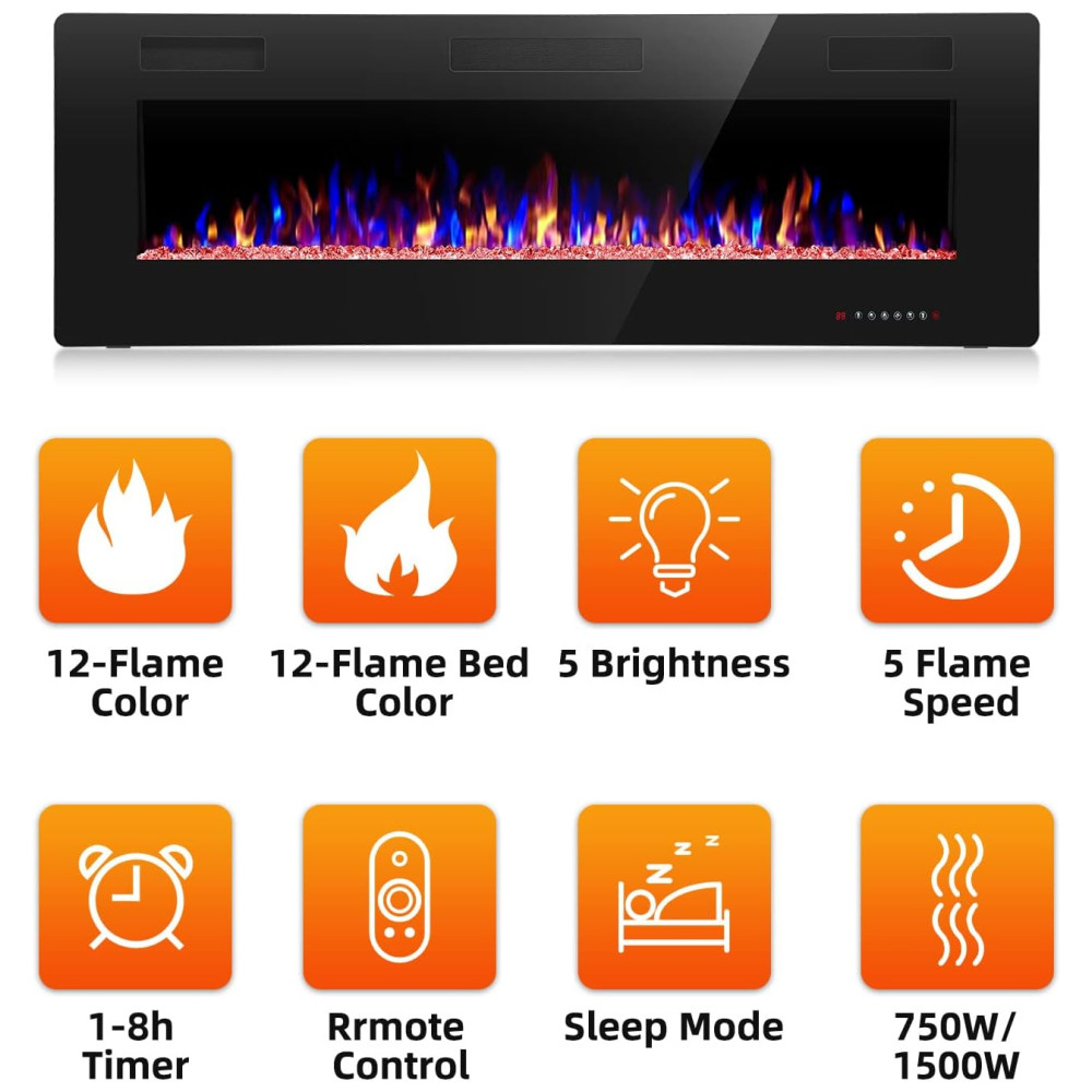 Vários modos de controle botão remoto e tela sensível ao toque tornam mais fácil para você operar as funções desta lareira, interruptor de energia, velocidade de chama ajustável de 5 e brilho de 5 chamas, modo de chama e modo de aquecimento podem ser operados separadamente, temporizador de 1 8 horas , botão do modo de suspensão.
