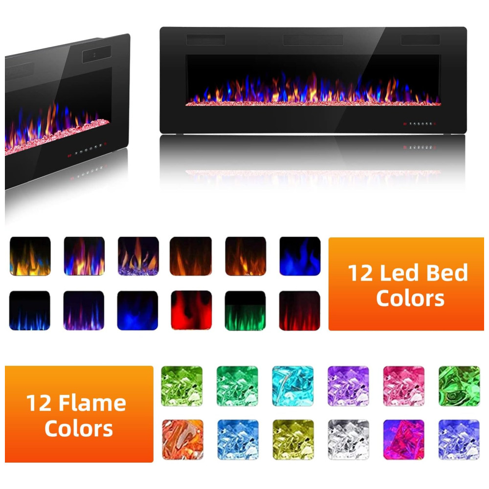 Chama realista grande visor de vidro temperado e tecnologia de luz LED permite que a chama queime alto o suficiente e pareça extremamente real, 12 cores de chama e 12 cores de cama