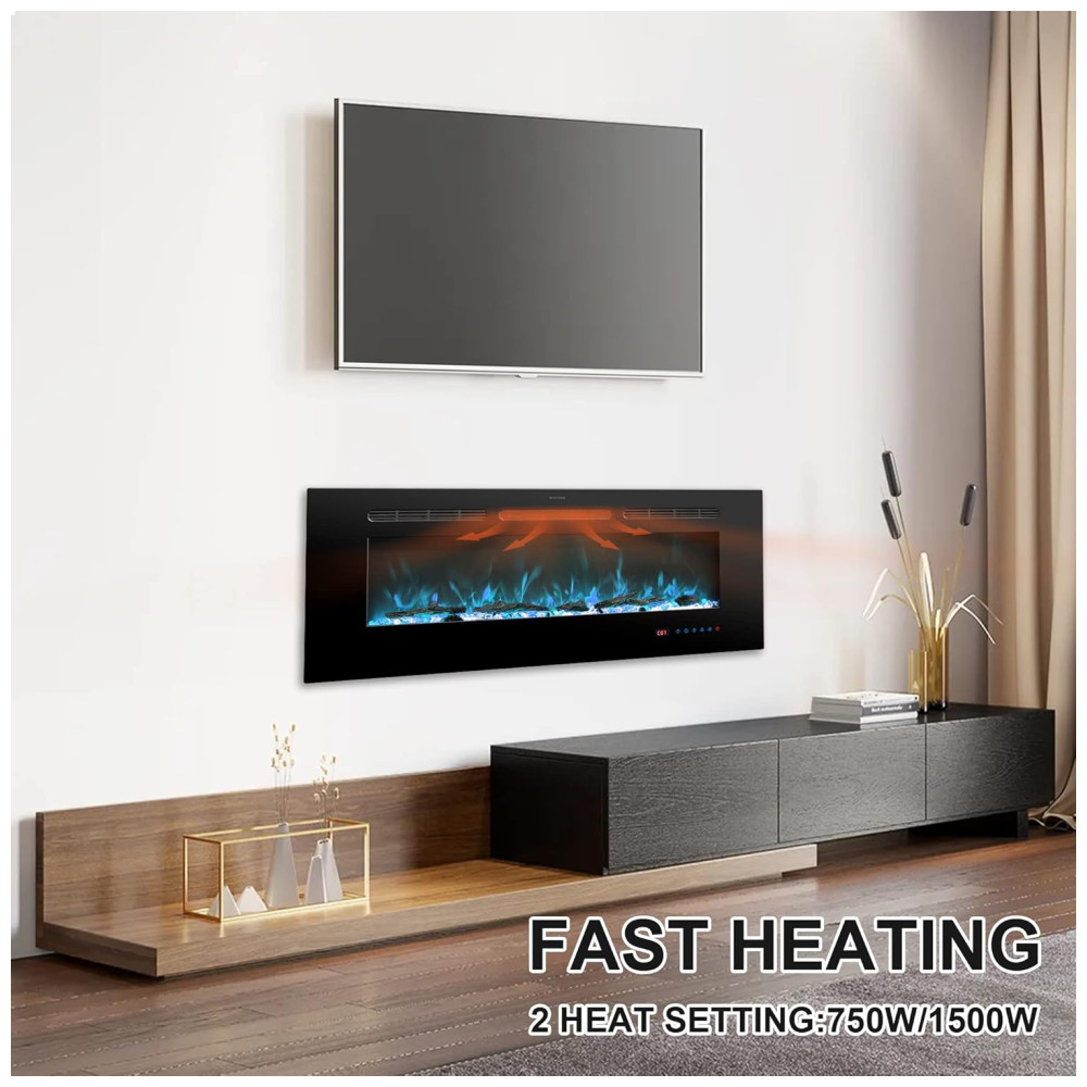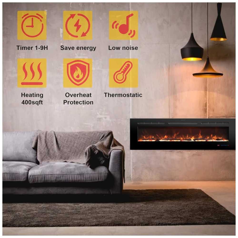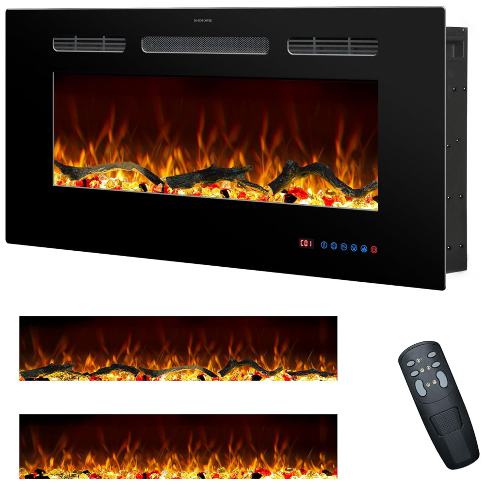 Lareira Elétrica de 76,2 cm Embutida na Parede c Controle Remoto, 13 Cores de Chamas c Cristais e Troncos, Aquecedor de Ambiente Interno,Rodalflame.