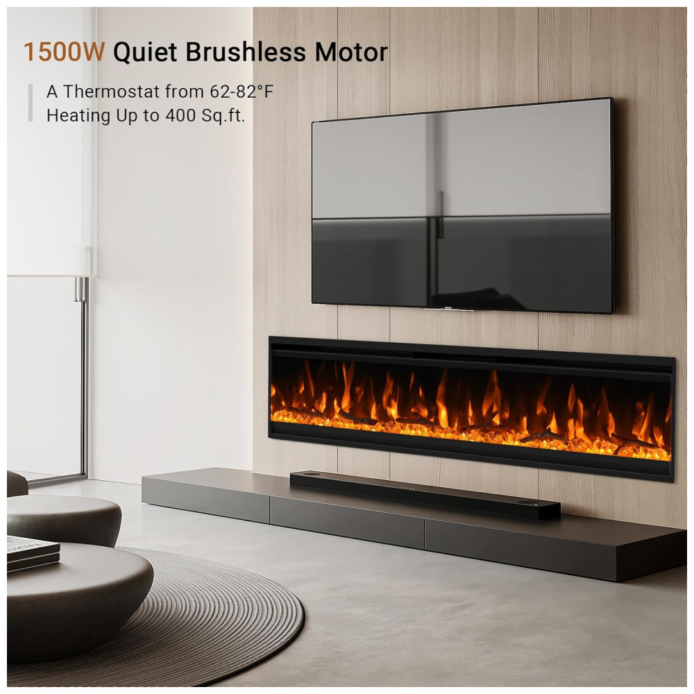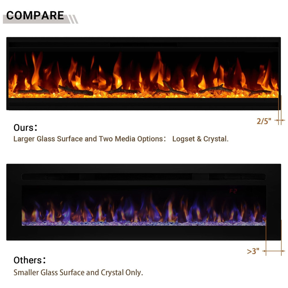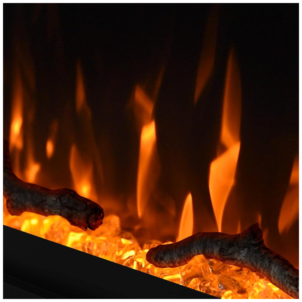 Esta lareira elétrica apresenta um design elegante e moderno com uma moldura ultrafina, oferecendo um efeito mais bonito e sofisticado do que as lareiras tradicionais. A moldura ul