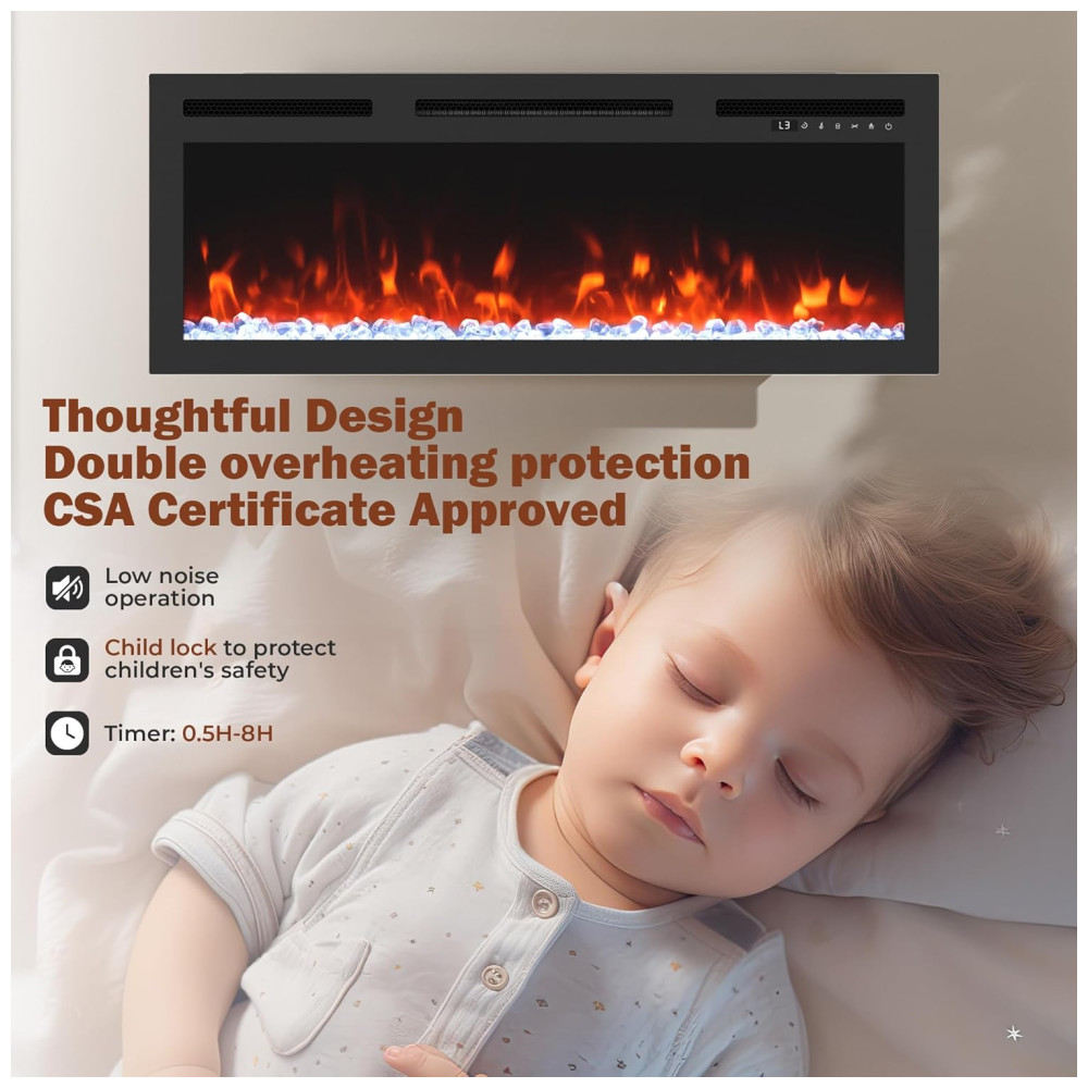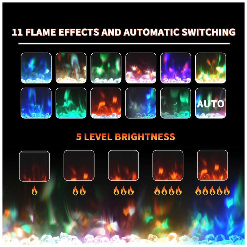 Apresentando a Lareira Elétrica Embutida de 91 cm Efeitos de Chama Aprimorados O número de efeitos de chama da lareira elétrica foi aumentado para 11, com efeitos de chama automáti