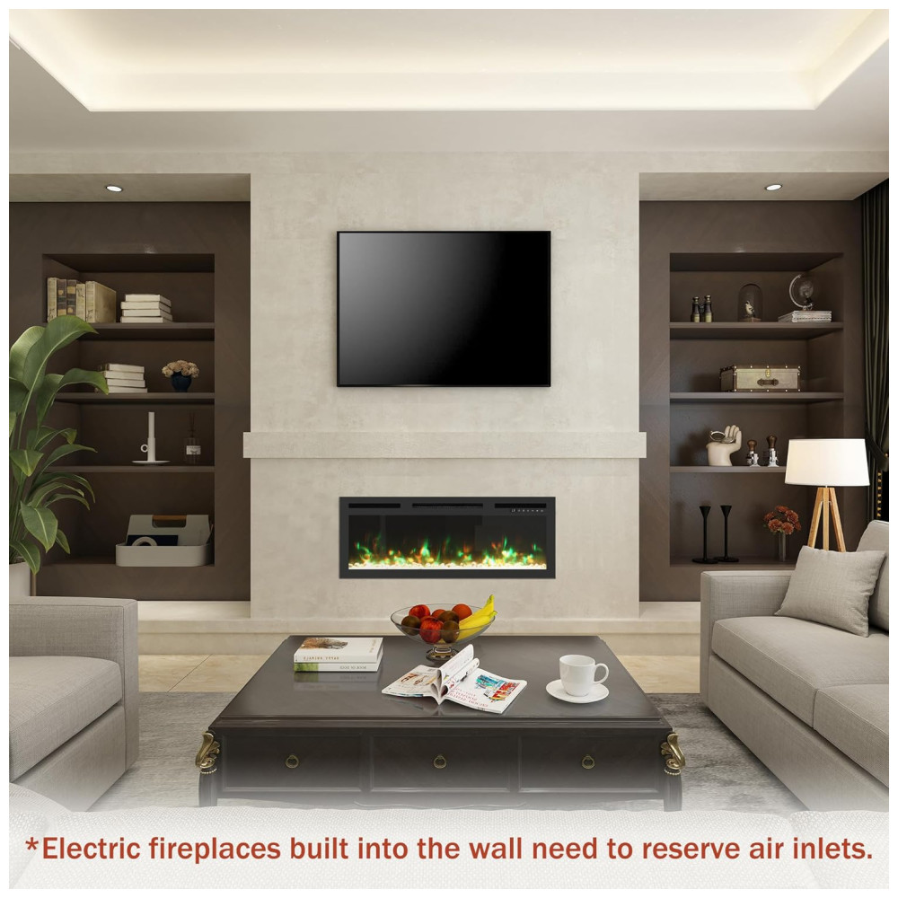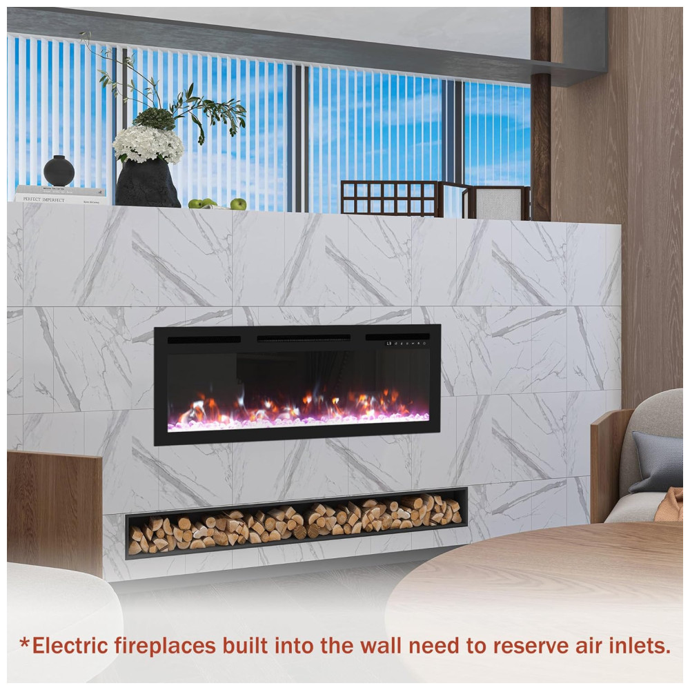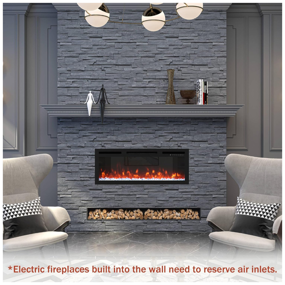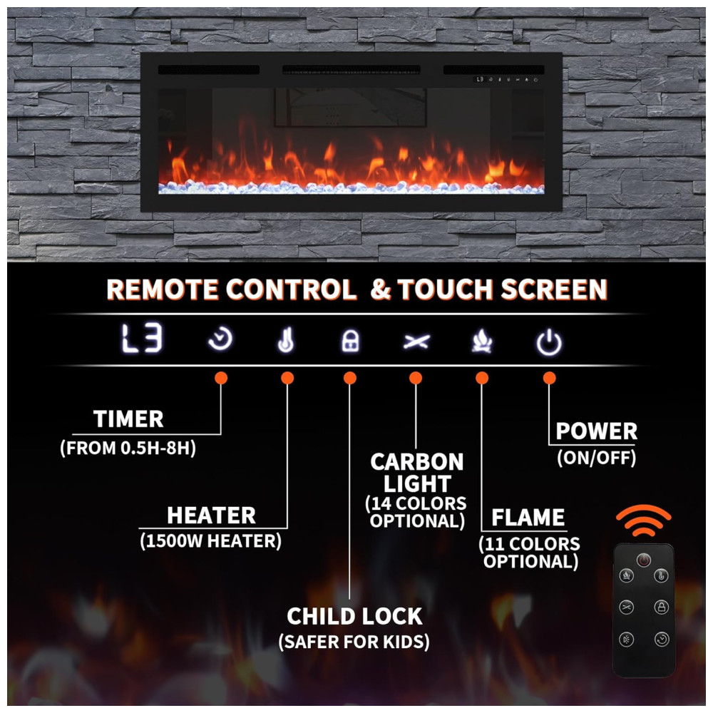 Lareira Elétrica de Embutir A35x91L cm com Baixo Ruído, 11 Opções de Chamas, Controle Remoto e Digital, 110V 1500W, MONDAWE, Preta