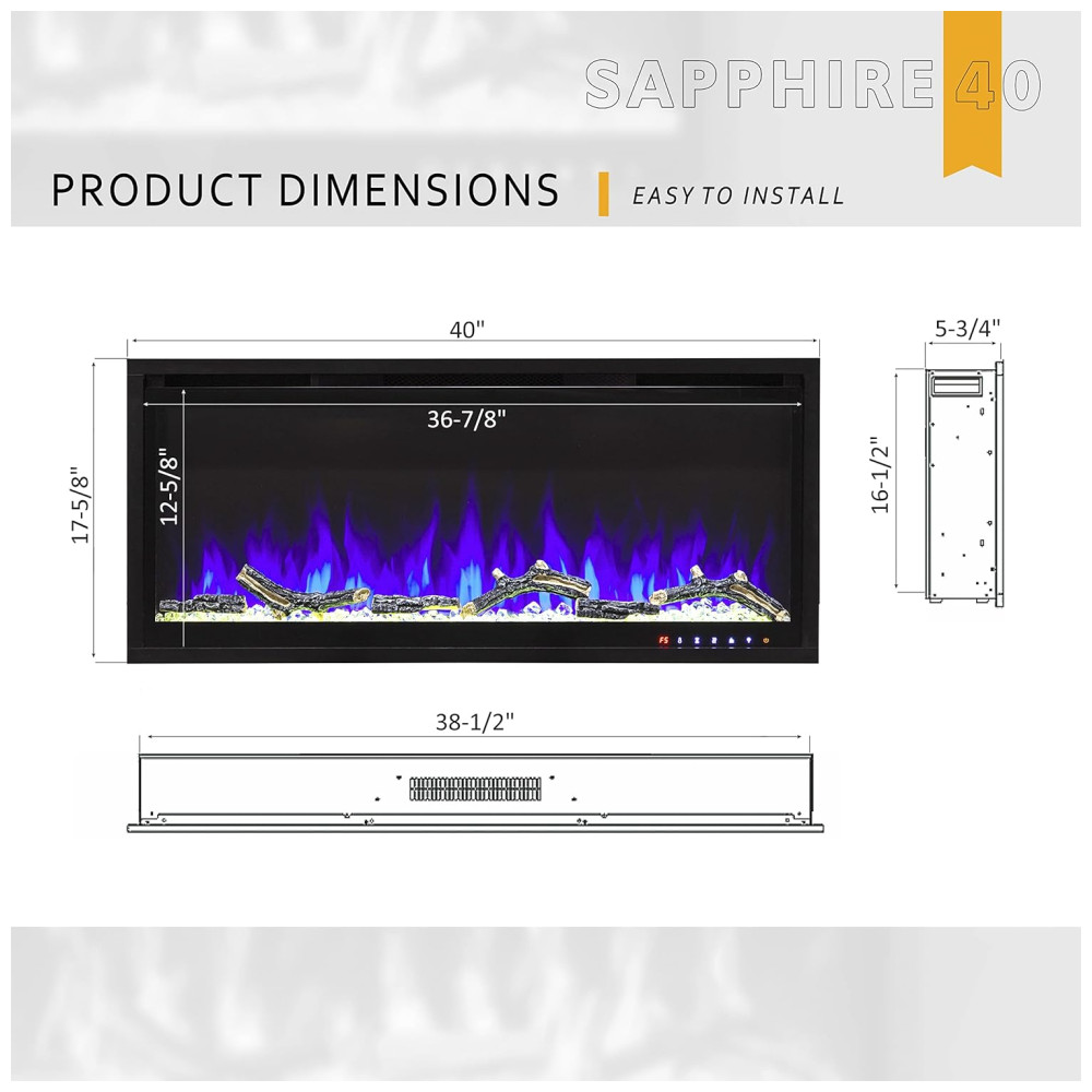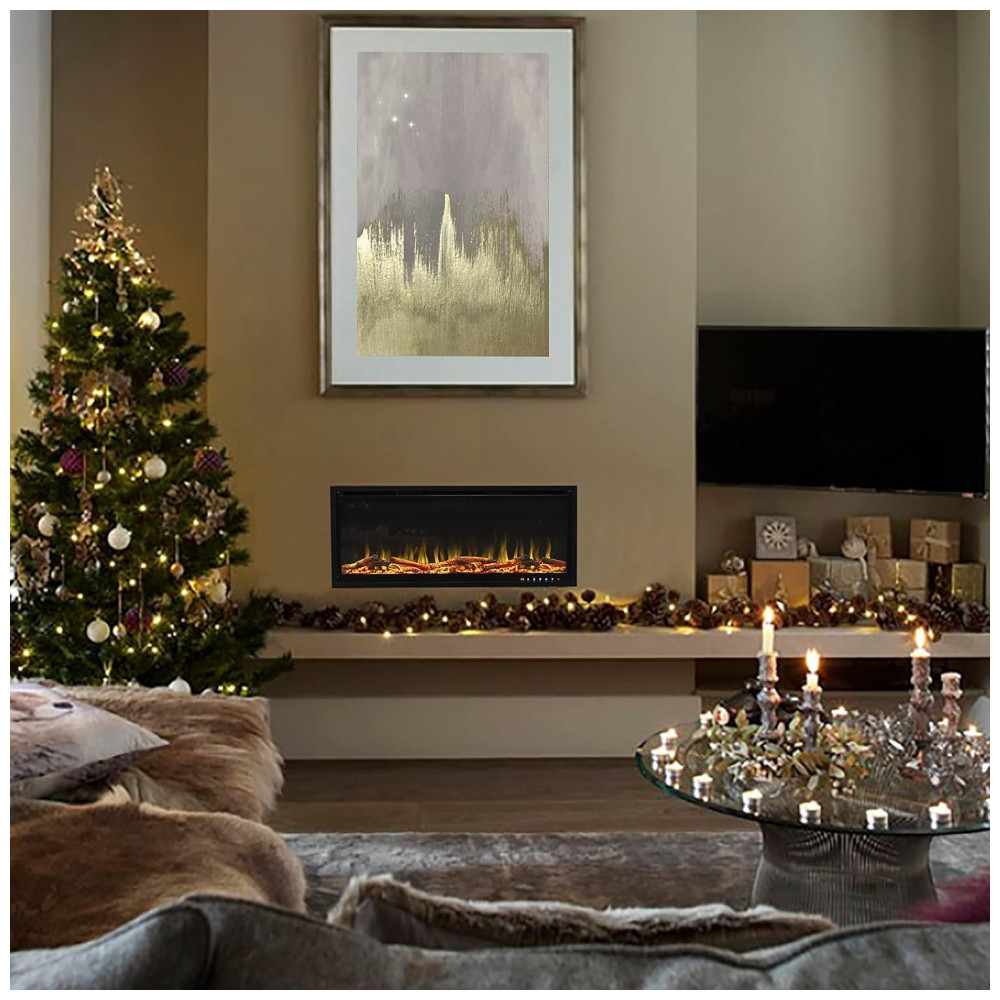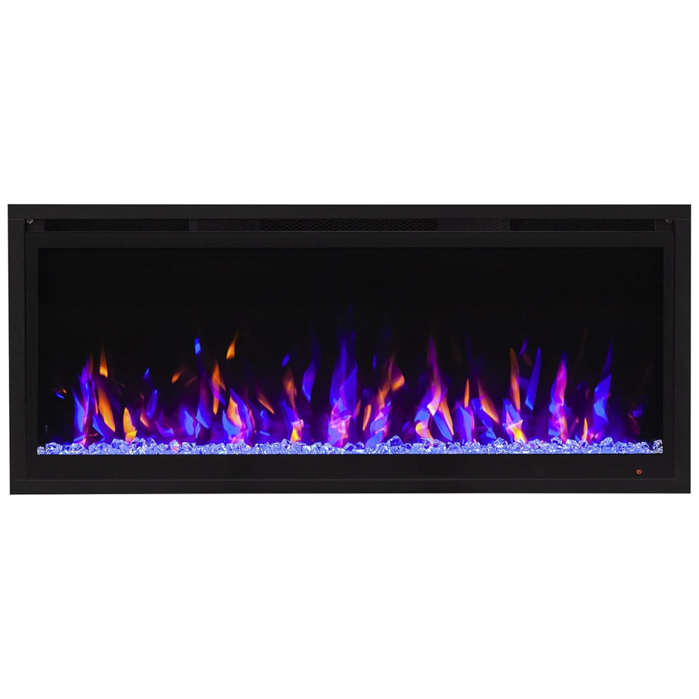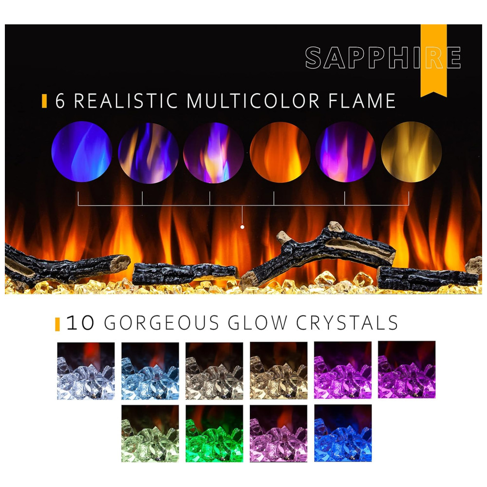 Lareira Elétrica de Embutir A43x101L cm com Chamas Multicoloridas, Controle Remoto, Conjunto de Toras de Fogo Falso e Cristais, 110V 1500W, FIREBLAZE, Preta: