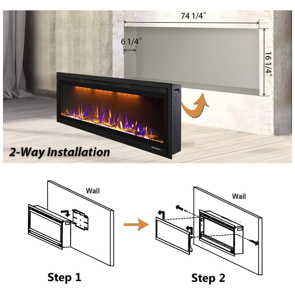Com saída de ar frontal superior, esta lareira foi projetada para montagem na parede e instalação embutida, que pode fornecer aquecimento suplementar para uma sala de até 37 m2 512