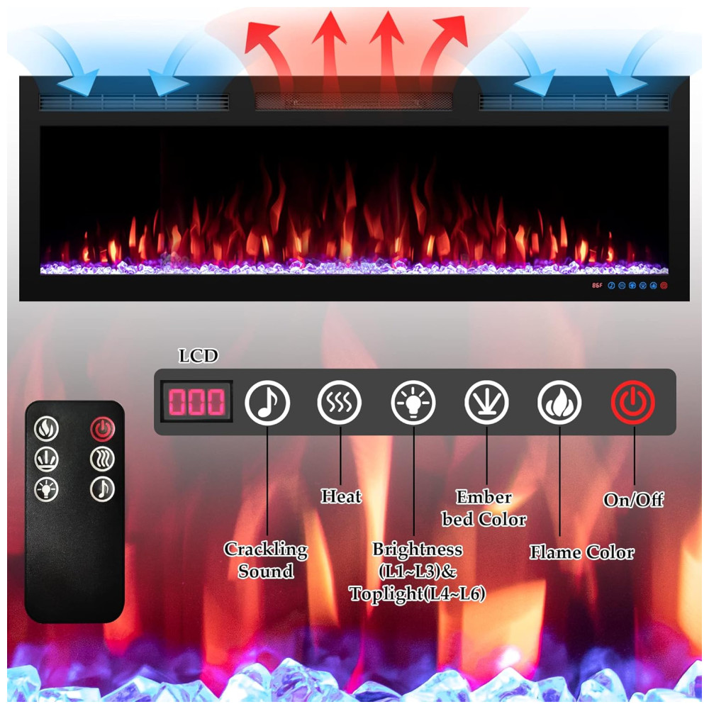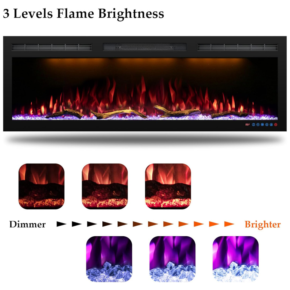Lareira Elétrica de Embutir A44x127L com Controle por APP e Chamas Multicoloridas, 110V 1500W, Dreamflame, Preta: