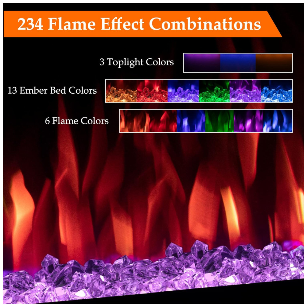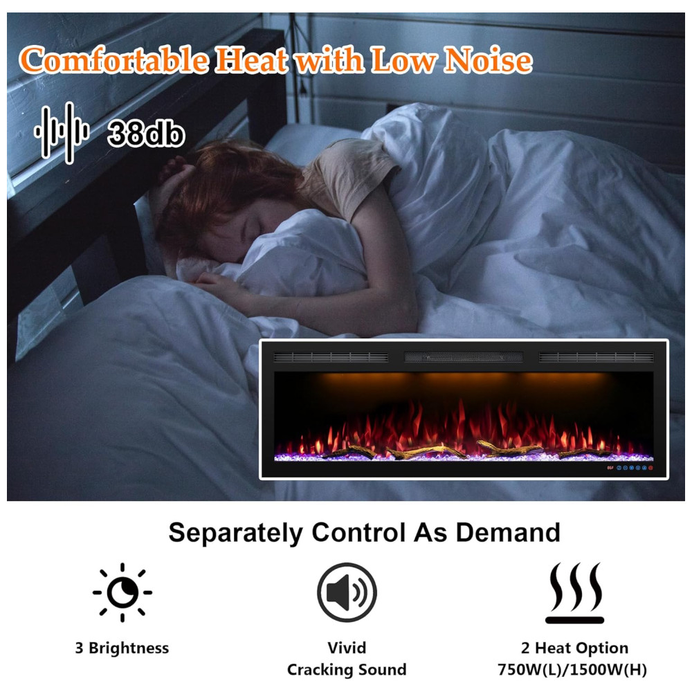 Lareira Elétrica de Embutir A44x152L com Controle por APP e Chamas Multicoloridas, 110V 1500W, Dreamflame, Preta