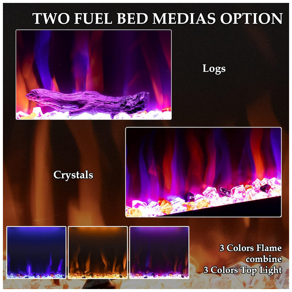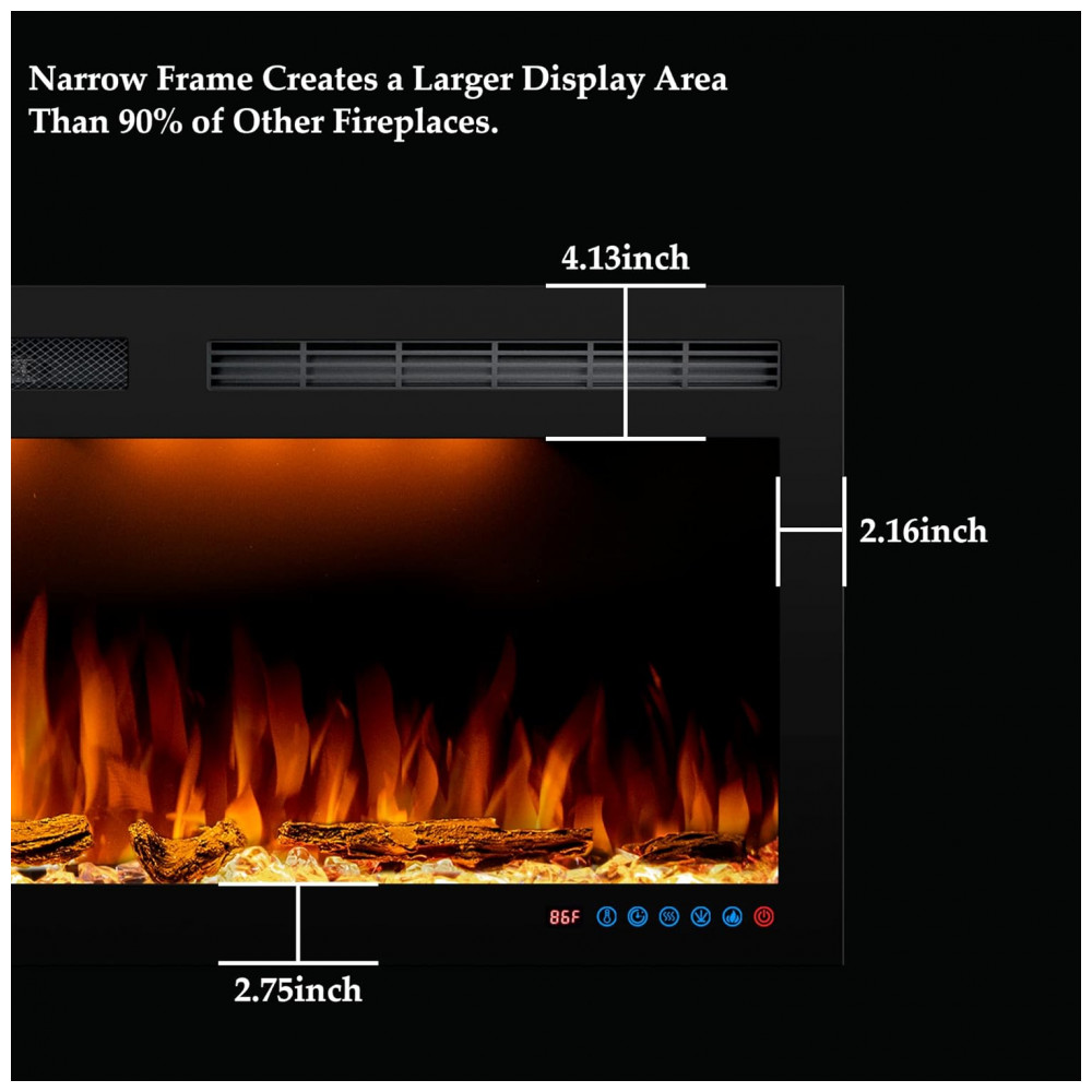 Designs Fashion Esta lareira elétrica linear possui uma moldura sólida preta e uma moldura ultrafina nos lados esquerdo direito, proporcionando uma tela maior para exibir a maravilhosa chama.
