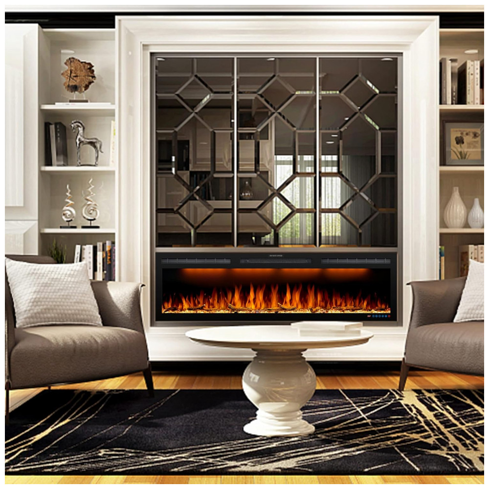 Lareira Elétrica de Embutir A44x152L com Controle Remoto e Chamas Realista e Proteção contra Superaquecimento, 110V 1500W, Dreamflame, Preta: