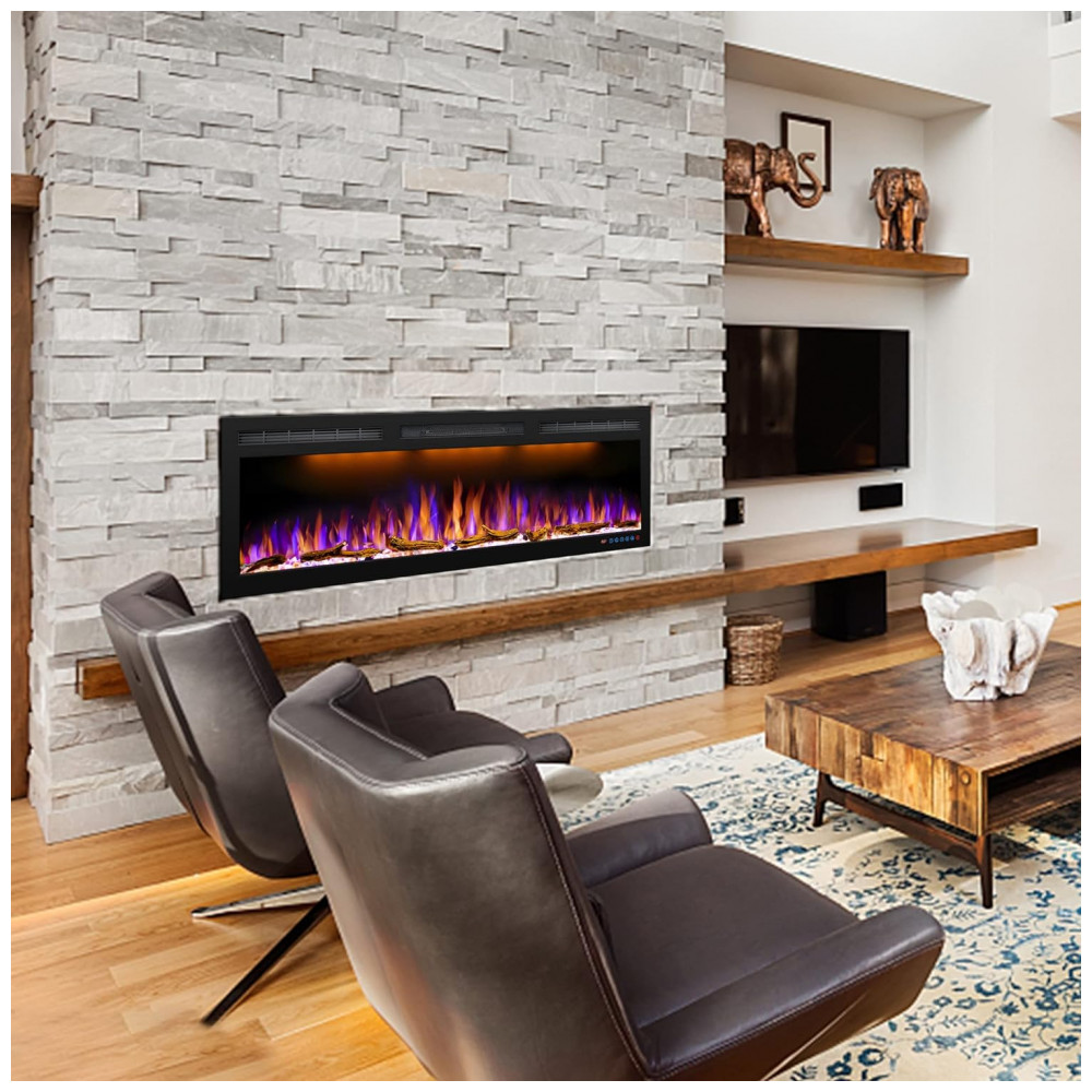 Descubra a Lareira Elétrica de 152 cm Embutida e Montada na Parede Instalação Fácil Esta lareira elétrica pode ser pendurada na parede ou embutida na parede ou no manto.