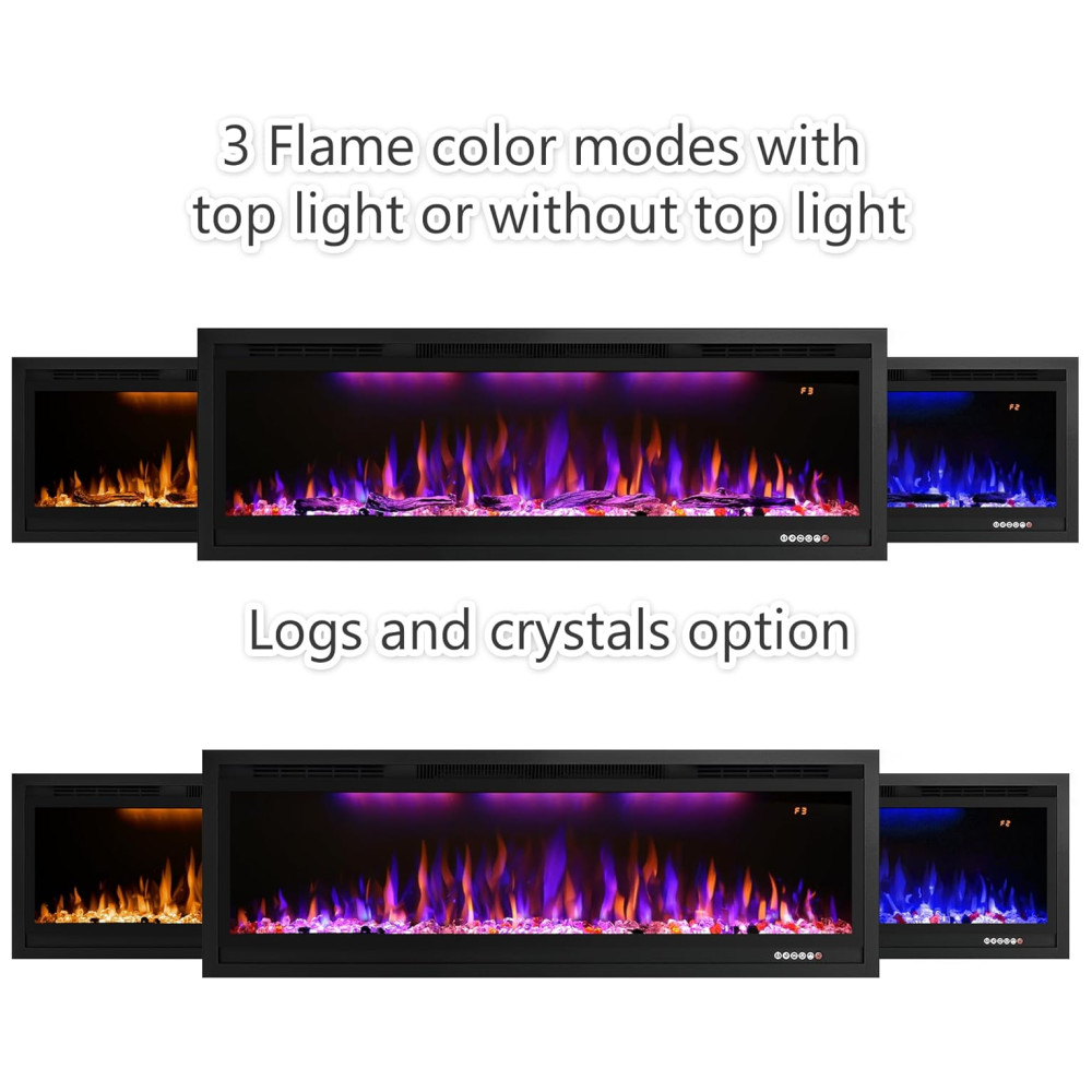 Chama Realista Este aquecedor de lareira elétrica possui 3 cores de chama e luz superior, com 9 combinações de cores para criar uma atmosfera colorida.