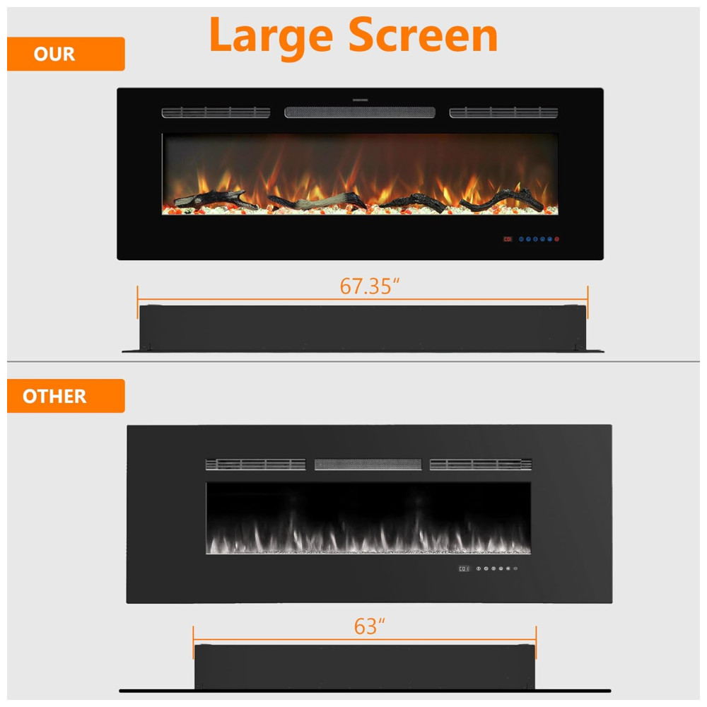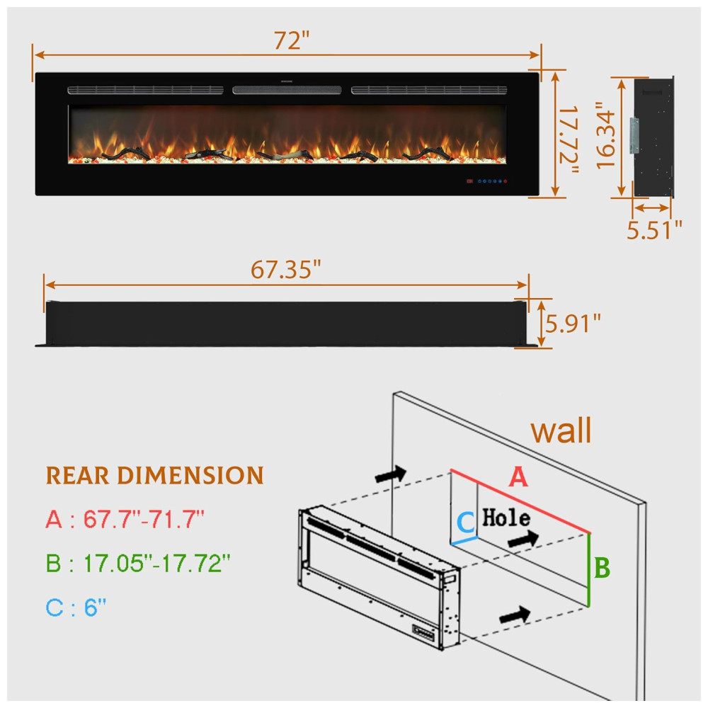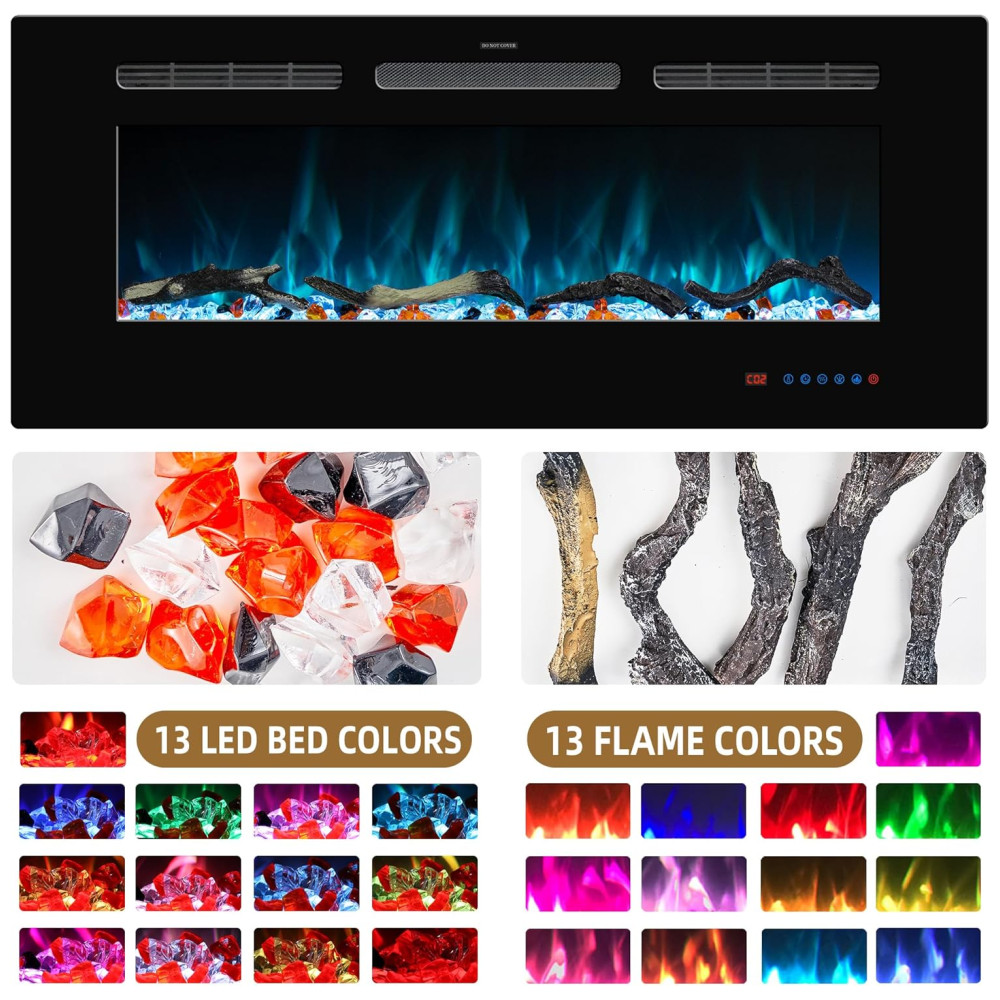 Lareira Elétrica de Embutir A44x182L com Controle Remoto, Tela Sensível ao Toque e Chamas Multicoloridas, 110V 1500W, Kentsky, Preta: