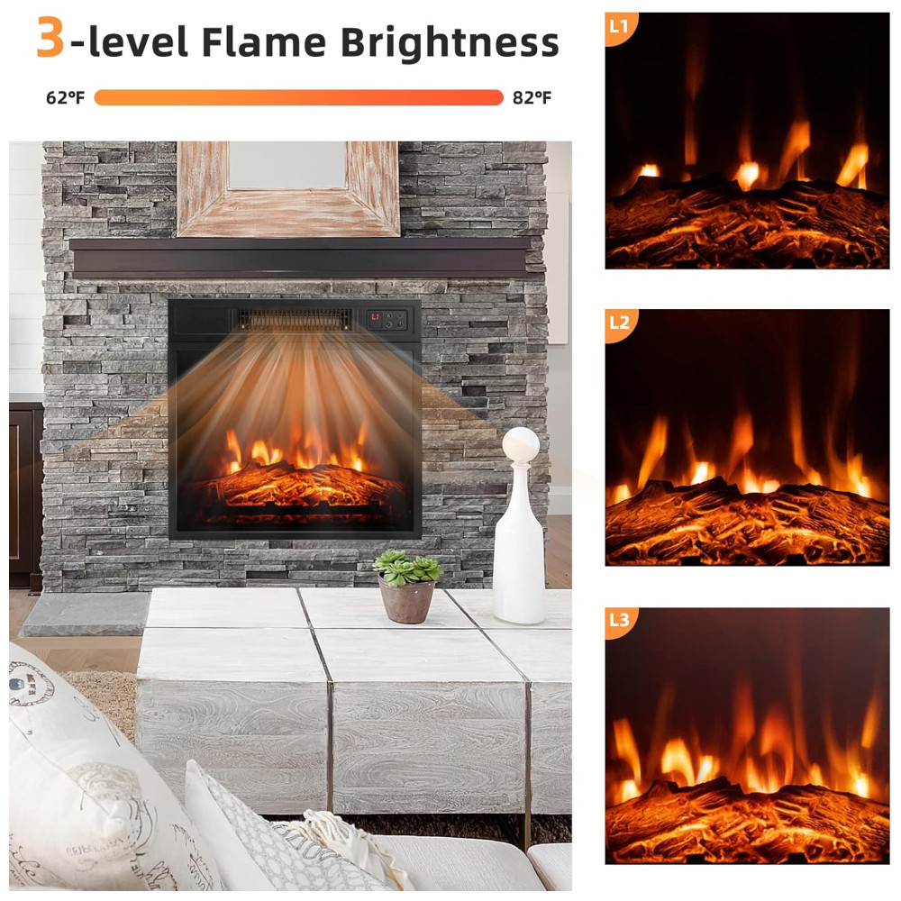 Conheça a Lareira Elétrica de Embutir Tangkula Brilho da Chama em 3 Níveis Esta lareira elétrica é projetada com 3 níveis de brilho da chama alto, médio, baixo para satisfazer suas