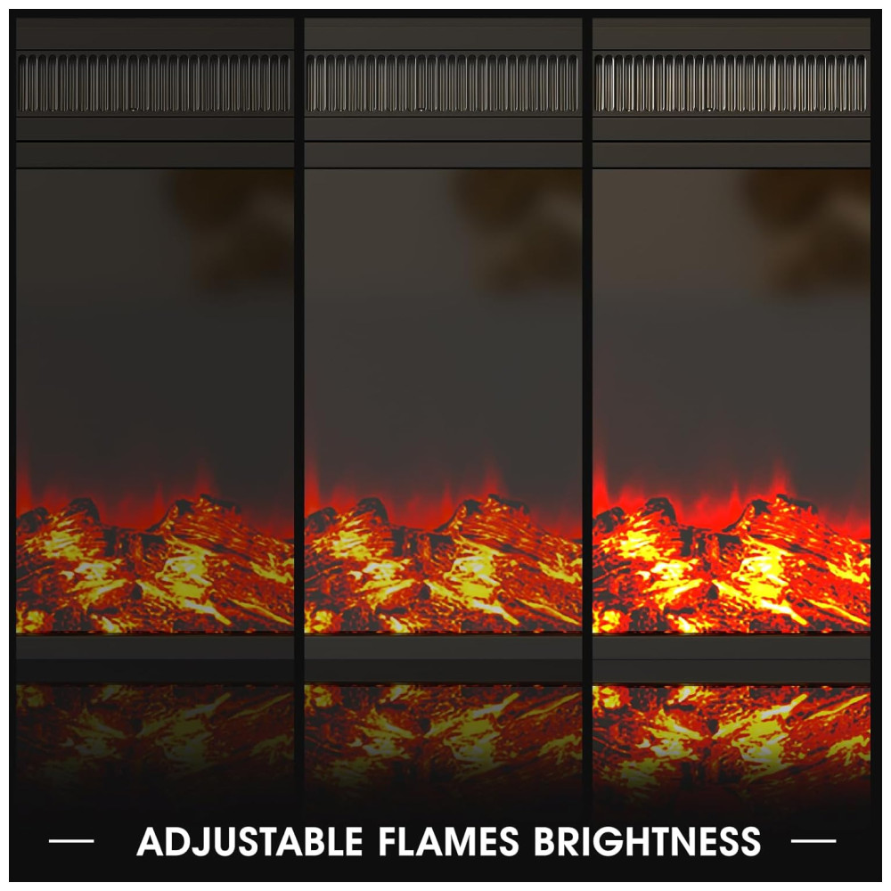 O aquecedor elétrico dispõe de três configurações ajustáveis de brilho das chamas e permite o uso independente do efeito de chama e da função de aquecimento, podendo funcionar também como uma peça decorativa.