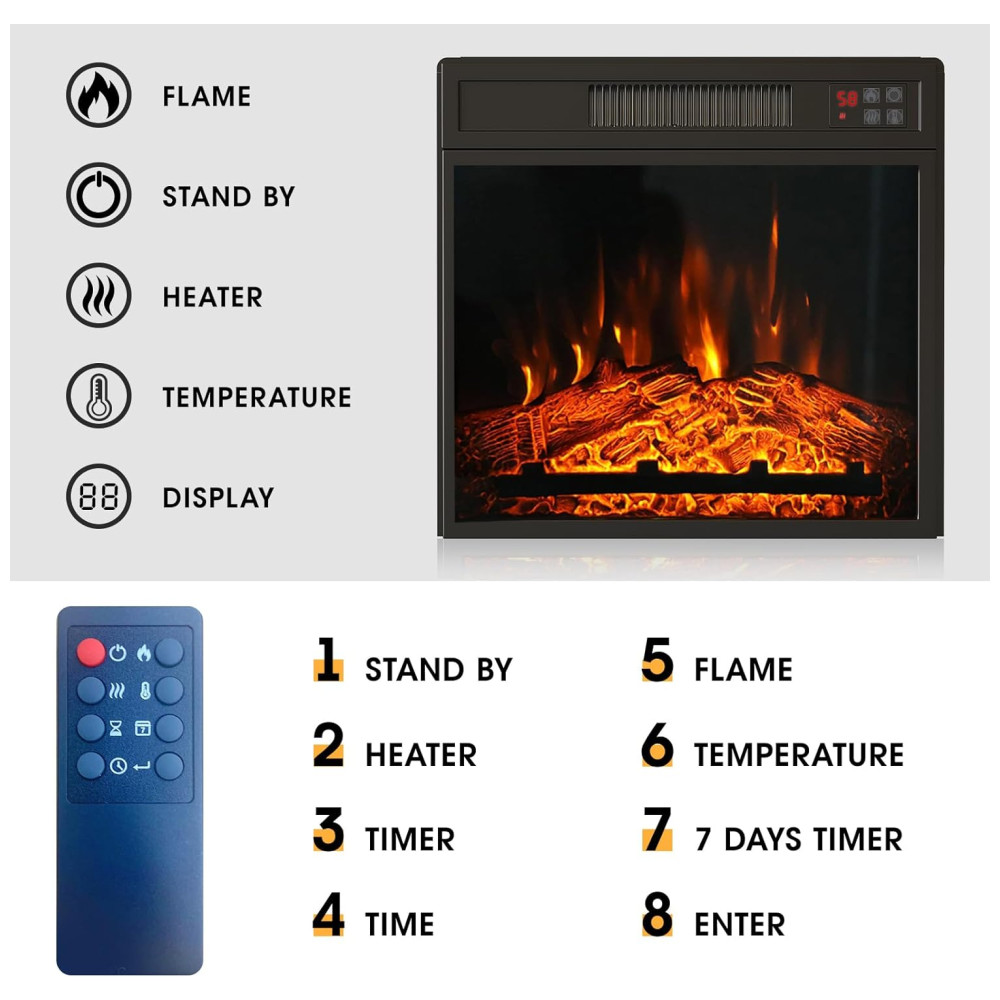 Lareira Elétrica de Embutir A44x59L cm com Brilho de Chama Ajustável, Baixo Ruído, Temporizador, Controle Remoto e Digital, 110V 1400W, Vabches, Preta: Este aquecedor de lareira elétrica é a escolha perfeita para criar um ambiente acolhedor e sofisticado.