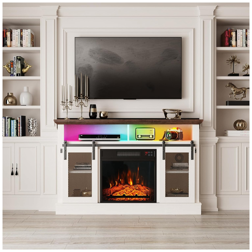 A lareira apresenta chamas realistas e um efeito de toras queimando, criando um charme especial para o ambiente.