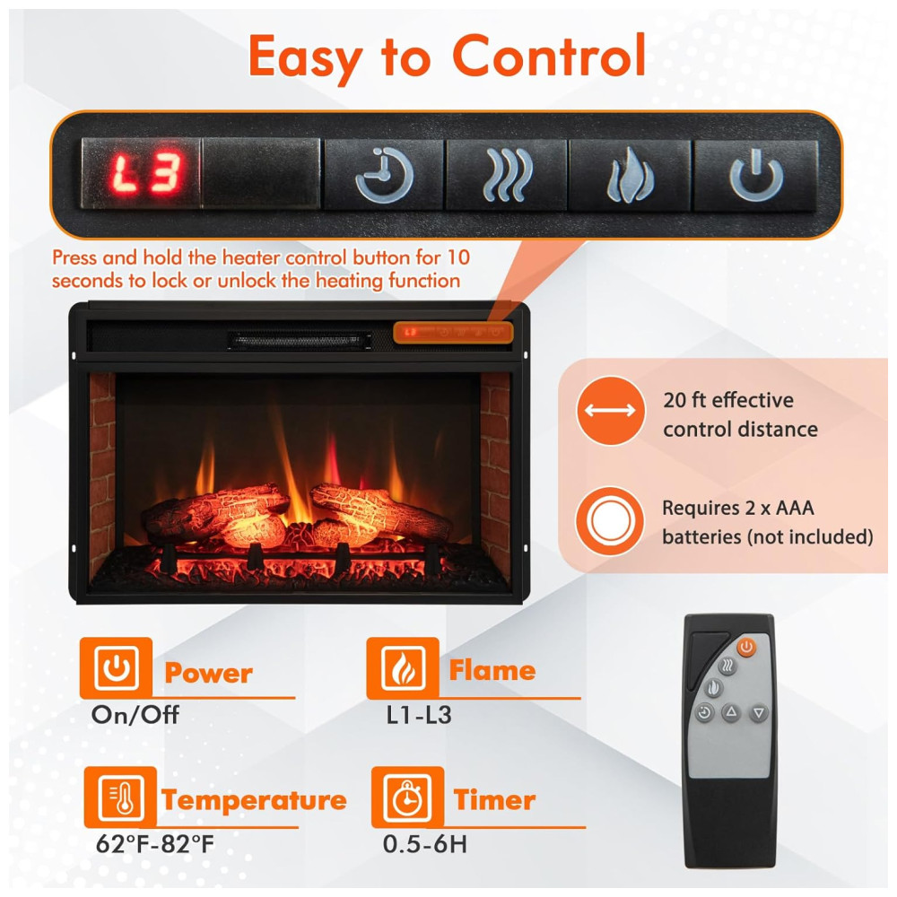 Lareira Elétrica de Embutir A44x68L com Controle Remoto e Proteção contra Superaquecimento, 110V 1500W, Tangkula, Preta: Descubra o Inserto de Lareira Elétrica Tangkula de 68,9 cm e 1400W Perfeito para Aquecer Ambientes Com potência de 1400W, a lareira elétrica aquece rapidamente seu ambiente.