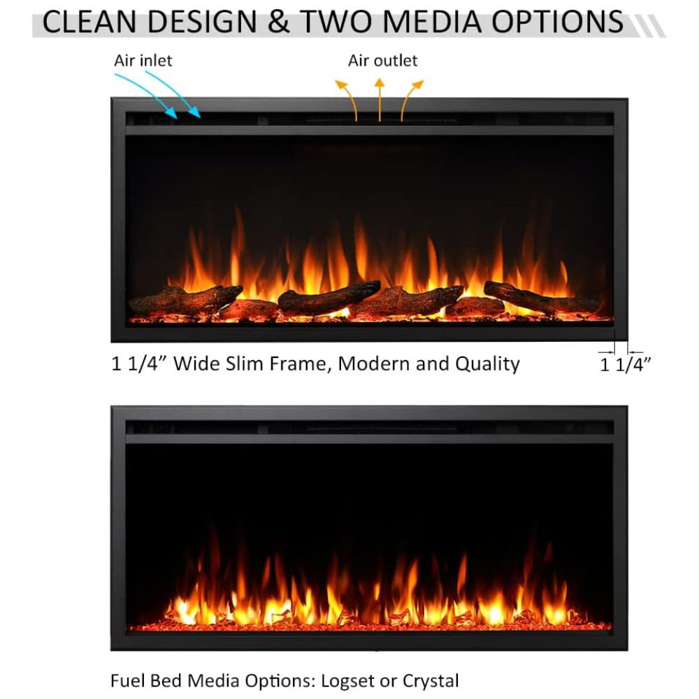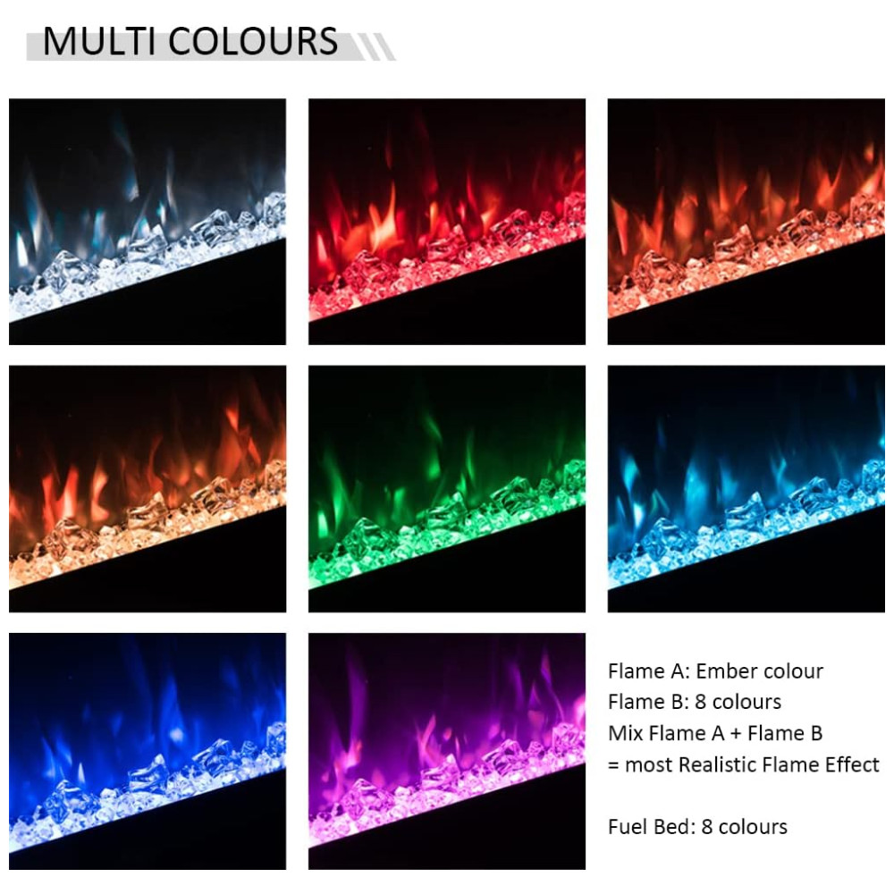 MULTI COMBINAÇÕES DE CHAMA A chama moderna e realista cria uma sensação de chama realista Incluindo as duas opções de leito de combustível conjunto de toras e pedra de cristal.