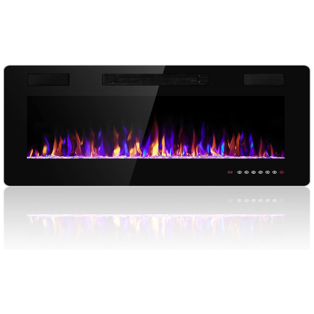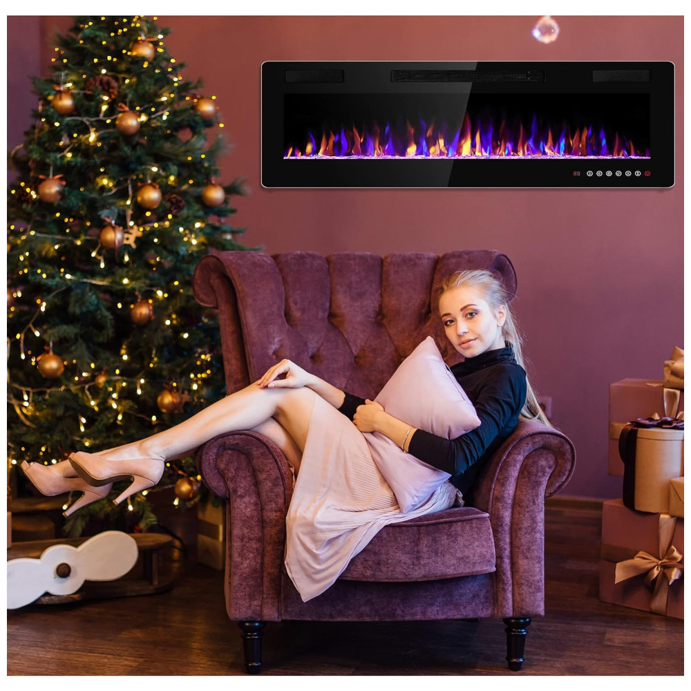 Modos de Controle Flexíveis Controle remoto e tela sensível ao toque tornam mais conveniente controlar cada função da lareira elétrica, interruptor de energia, controle de timer de 1 a 8 horas, interruptor independente de aquecimento e chama, cor e velocidade da chama ajustáveis, função de modo de suspensão.