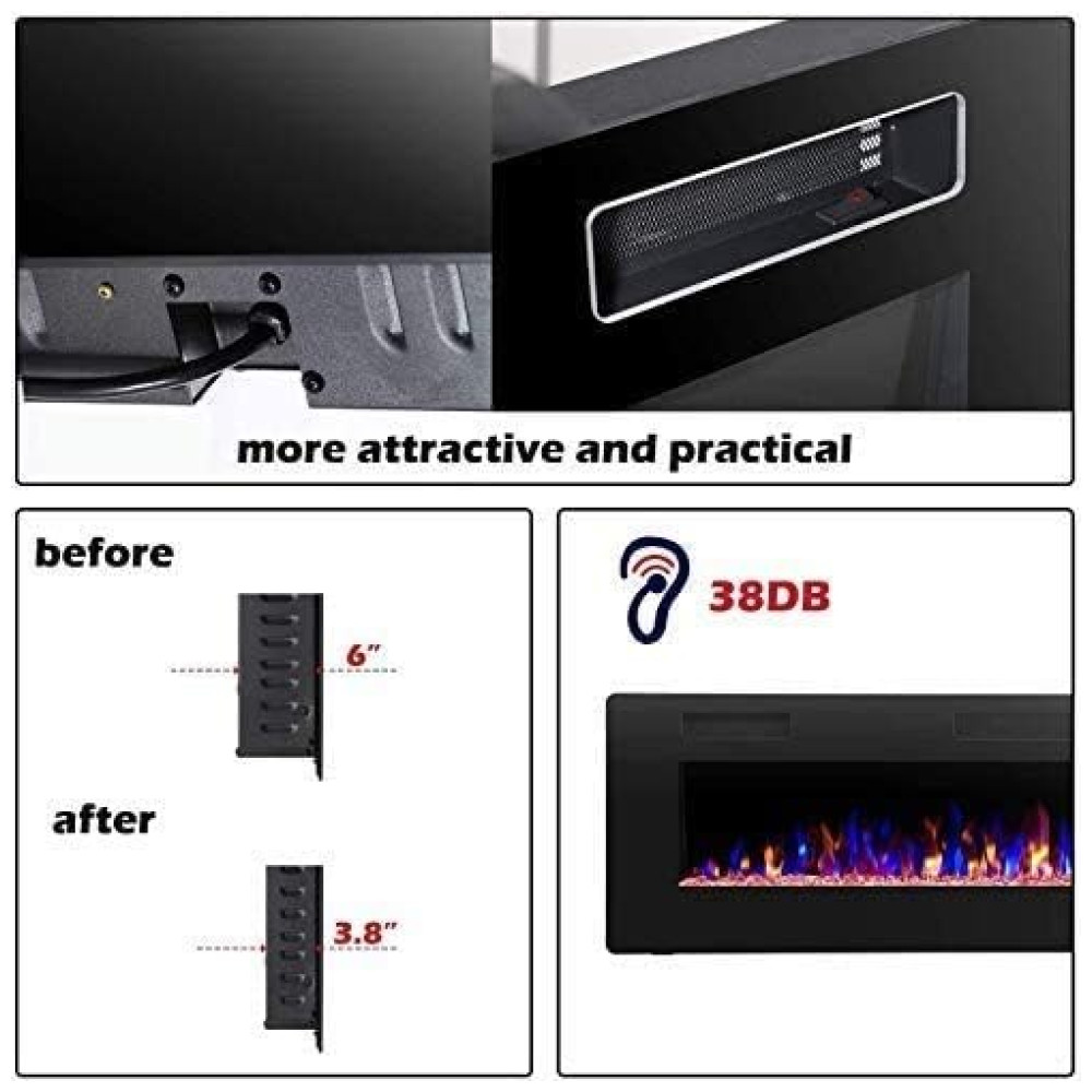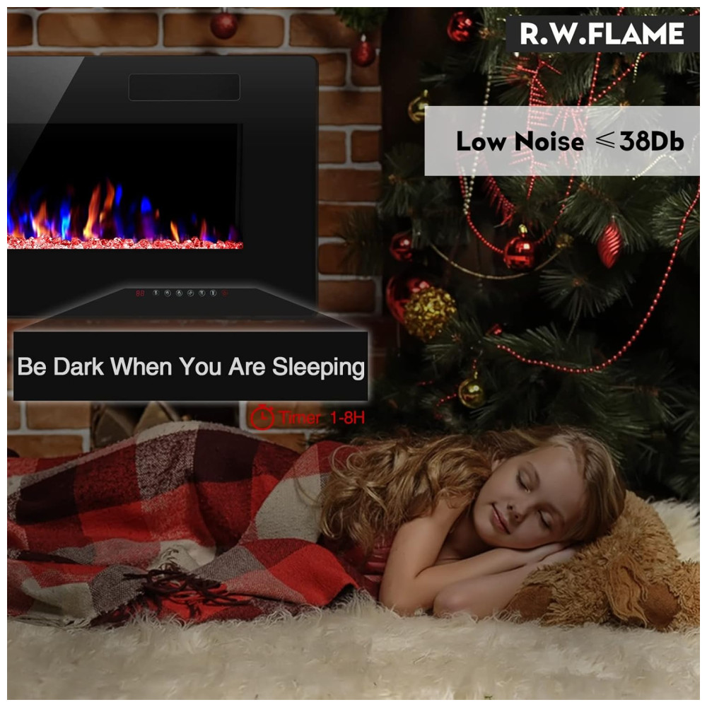 FLAME de 107 cm Modos de Operação Múltipla Tela sensível ao toque e controle remoto, 12 modos de cor de chama e leito de brasas LED, 5 modos de velocidade da chama, 5 níveis de brilho da chama, design especial de chama automática a cor e o brilho da chama mudam automaticamente .