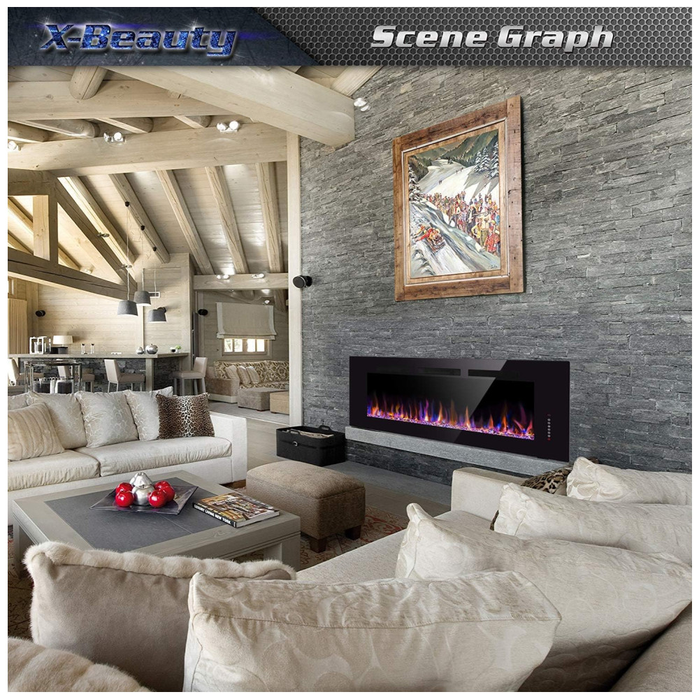 Lareira Elétrica de Embutir A45x127L com Temporizador, Chamas Multicoloridas e Tela Sensível ao Toque, Xbeauty, Preta: