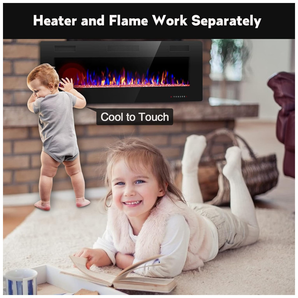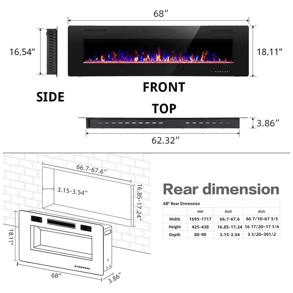 FLAME de 173 cm Modos de Operação Múltipla Tela sensível ao toque e controle remoto 12 modos de cor de chama e leito de brasas LED 5 modos de velocidade da chama 5 níveis de brilho da chama Design especial de chama automática a cor e o brilho da chama mudam automaticamente .