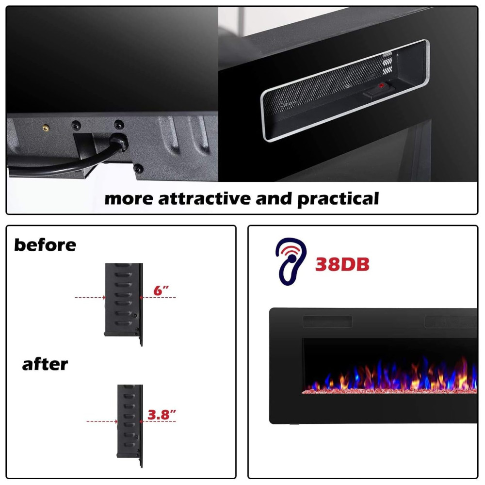 Lareira Elétrica de Embutir A45x172L com Controle Remoto e Temporizador, 110V, R.W.FLAME, Preta: Conheça a Lareira Elétrica R.