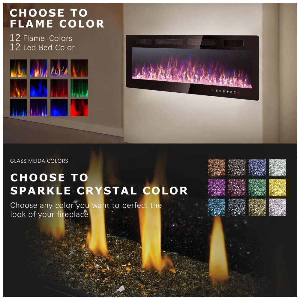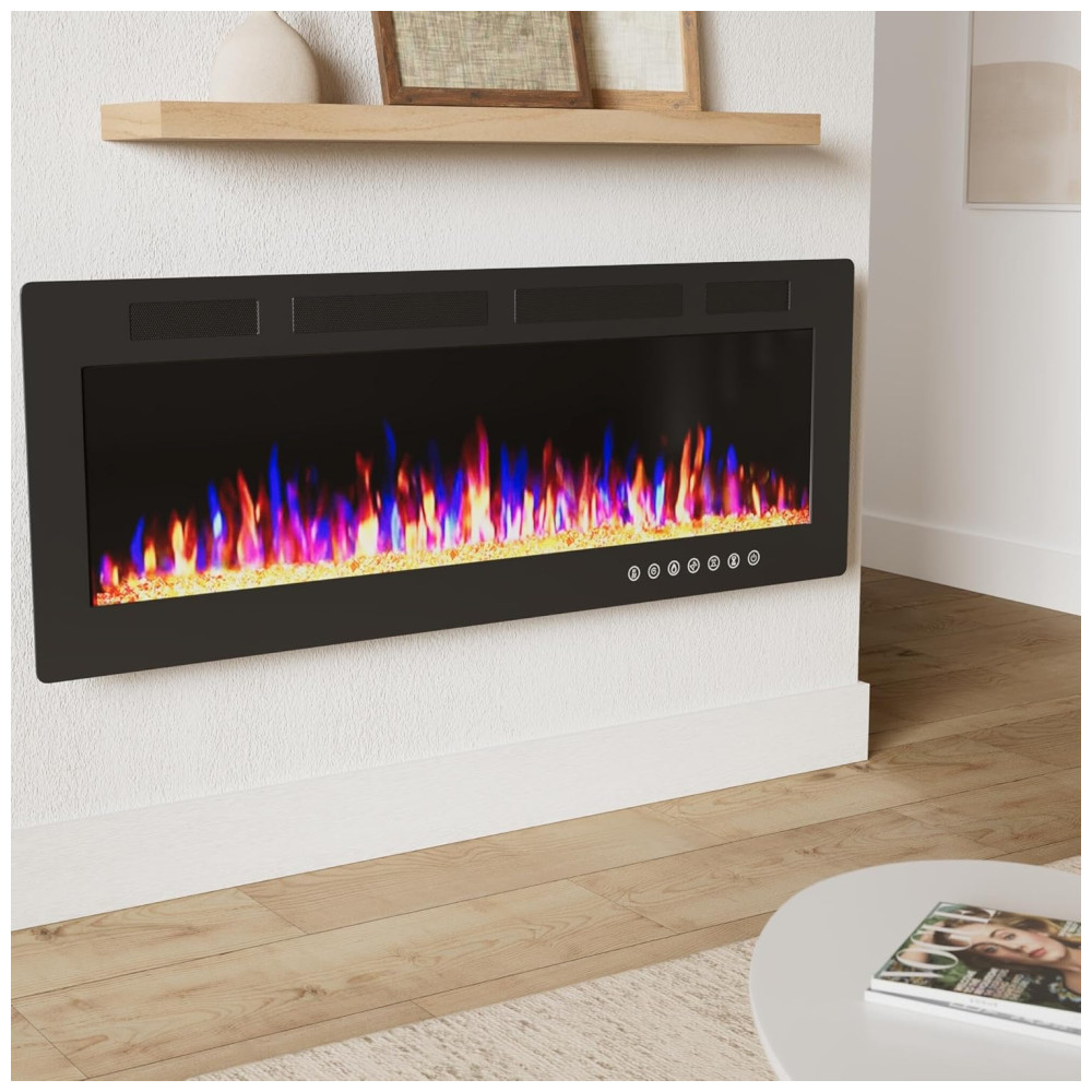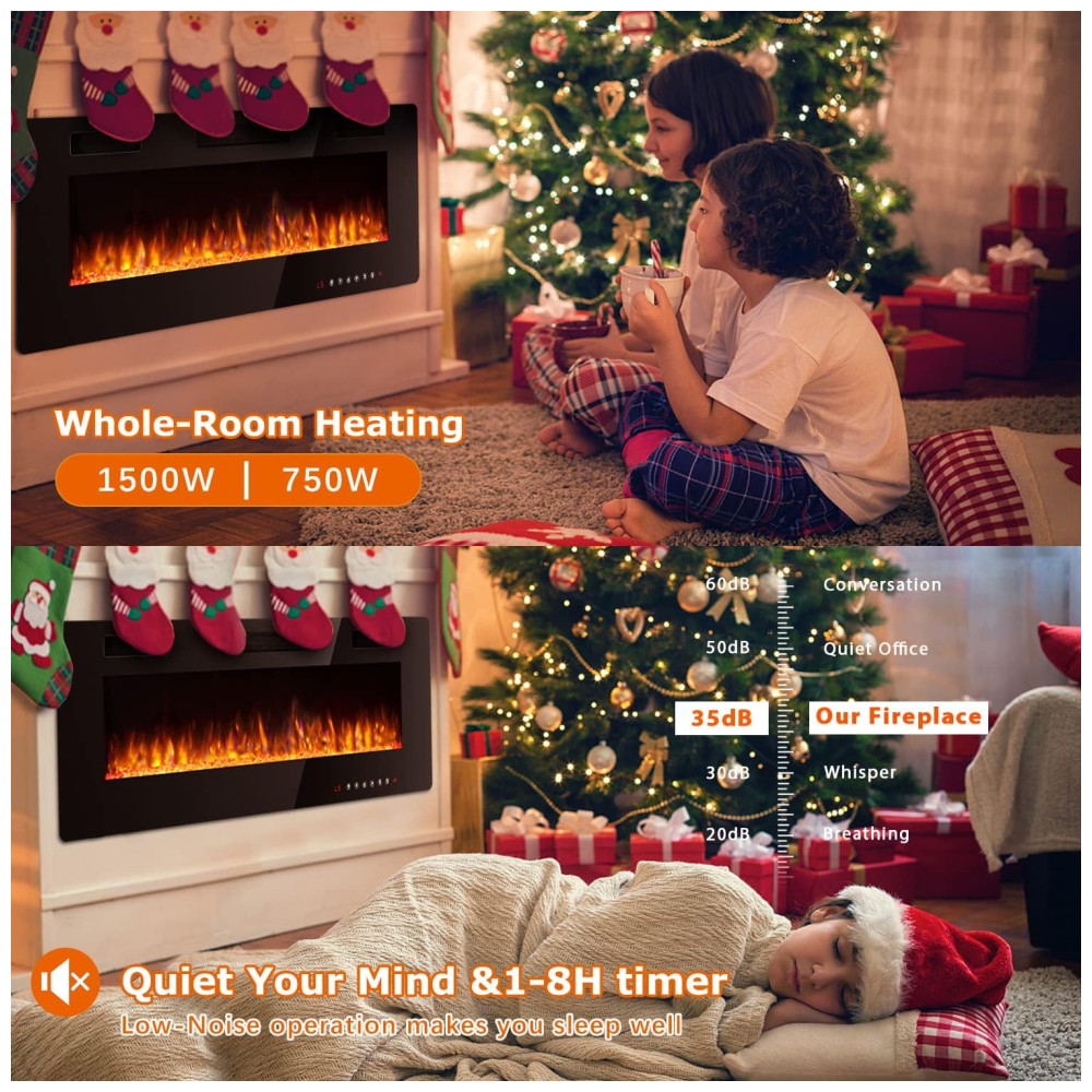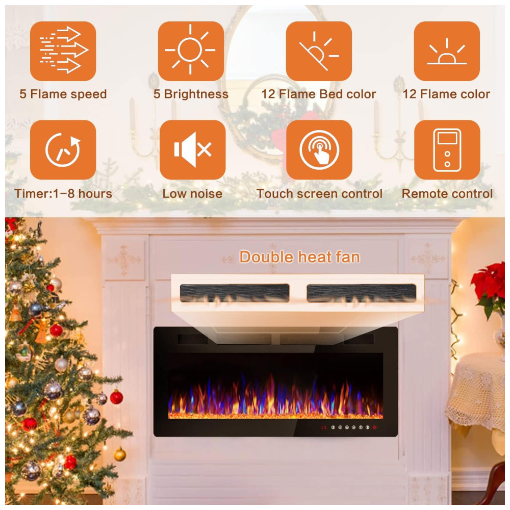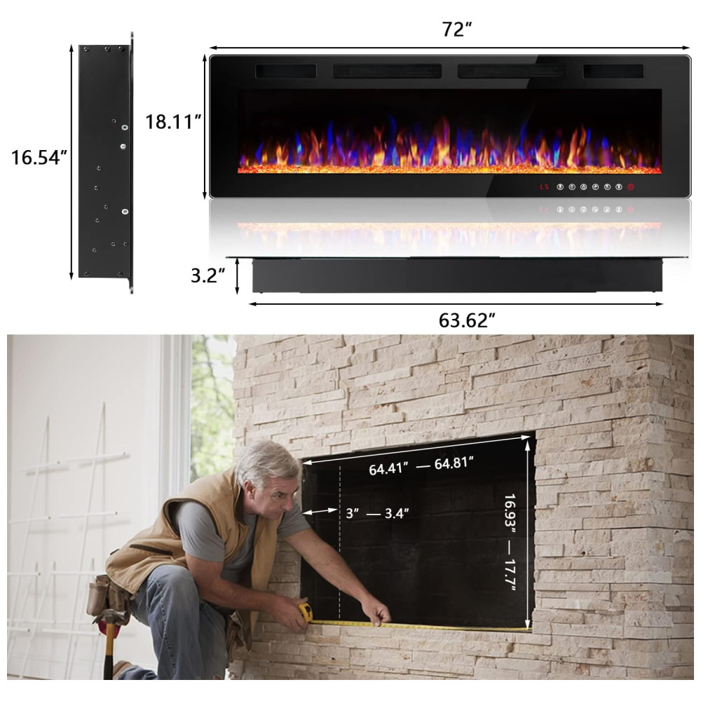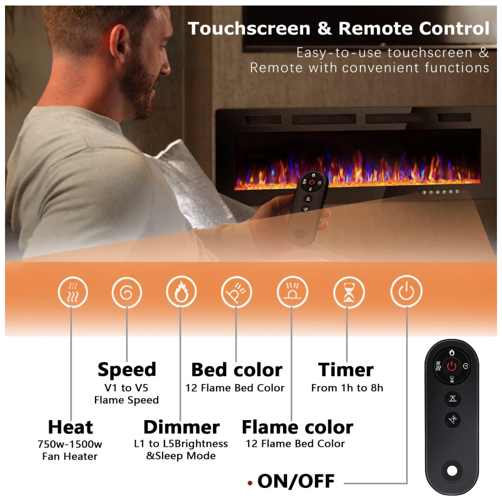 Lareira Elétrica de Embutir A45x182L com Controle Remoto e Tela Sensível ao Toque, 110V, Vitesse, Preta: Múltiplos métodos de instalação Esta lareira elétrica não só pode ser embutida ou semi rebaixada na parede, mas também pode ser montada na parede, ajuste perfeito para paredes de pinos de 5×15 centimetros.