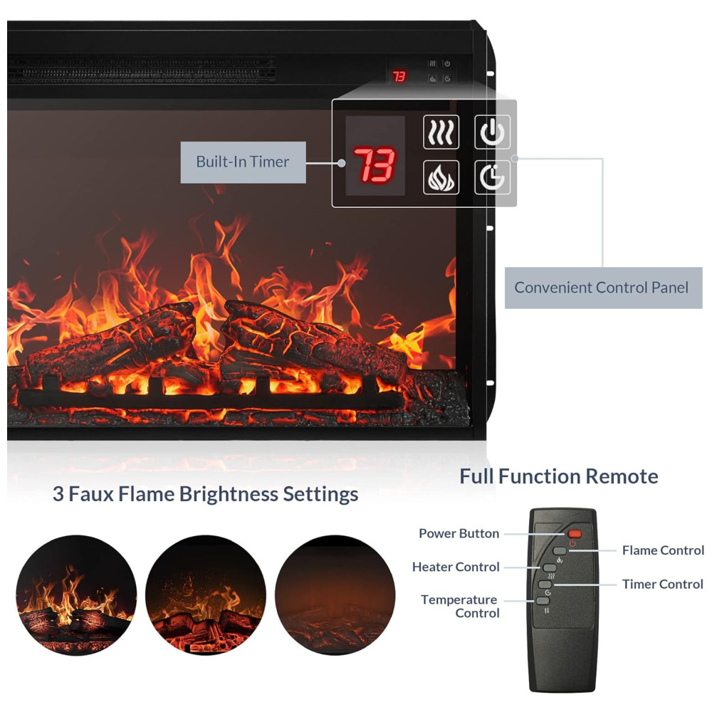 Lareira Elétrica de Embutir A45x60L cm com Brilho Ajustável, Temporizador e Controle Remoto, 110V 1400W, BELLEZE, Preta: