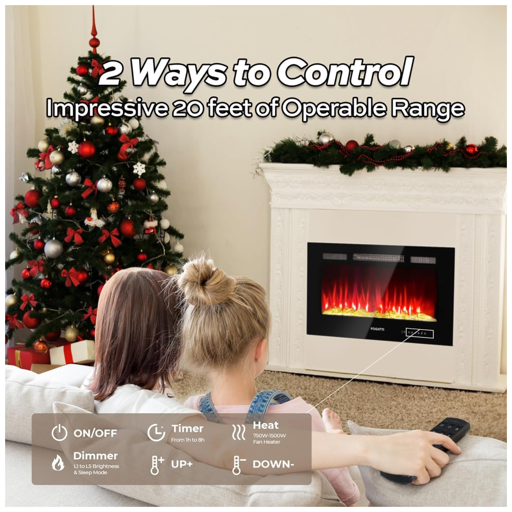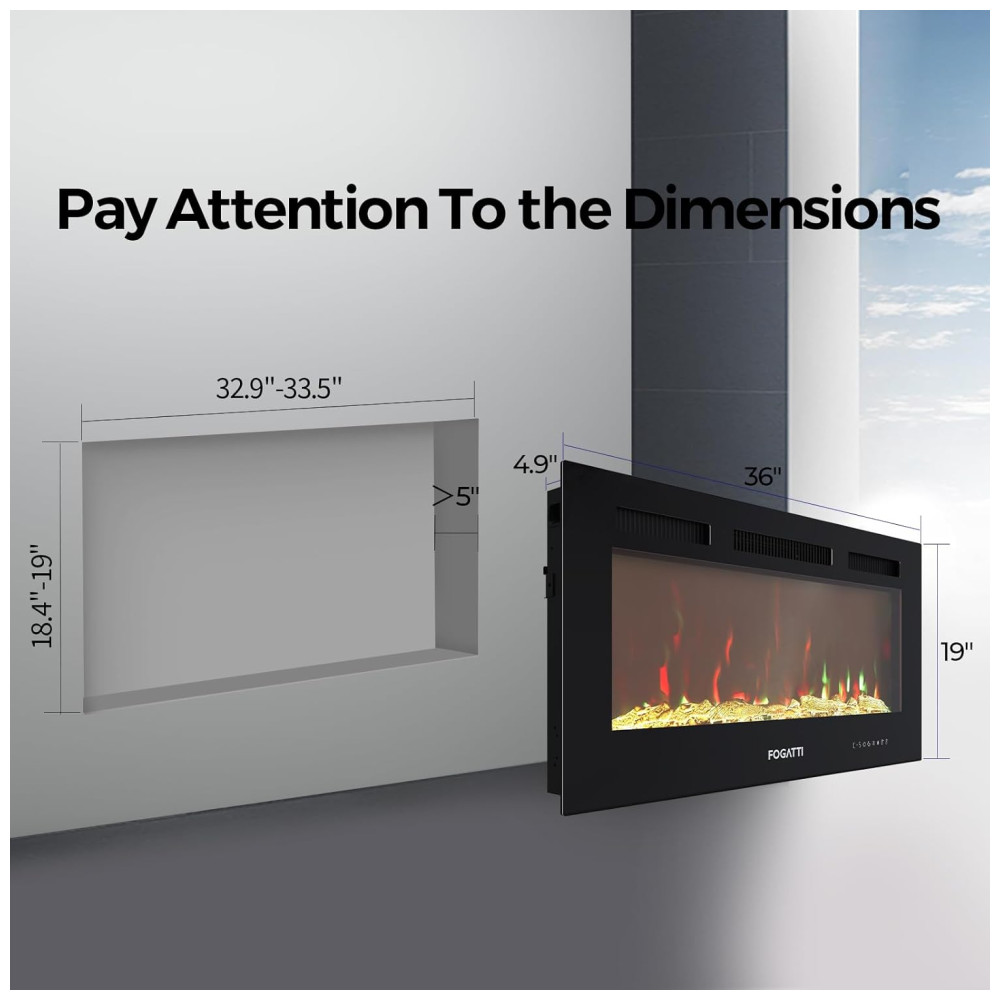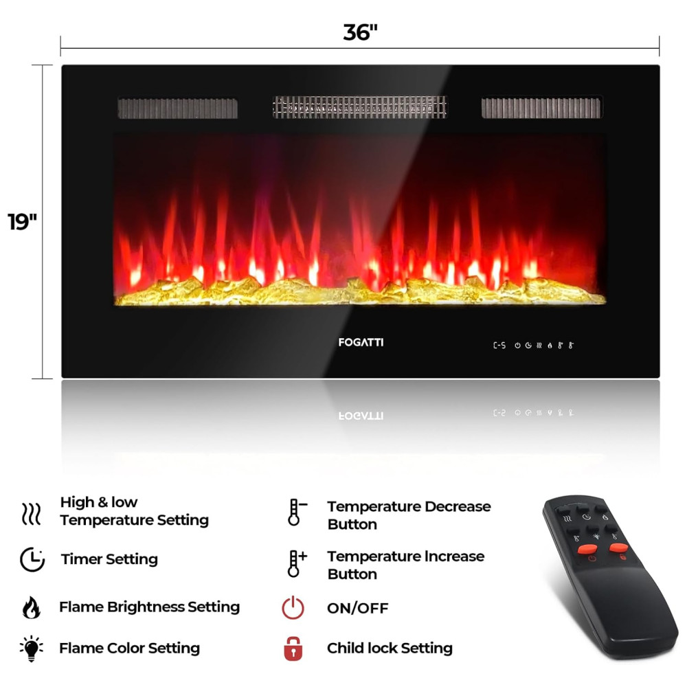 Lareira Elétrica de Embutir A48x76L com Controle Remoto e Temporizador, 110V, FOGATTI, Preta: Compatível com todos os fabricantes de trailers Compatível com trailers holandeses, encruzilhadas, Forest River, Keystone, Heartland e muitos outros.