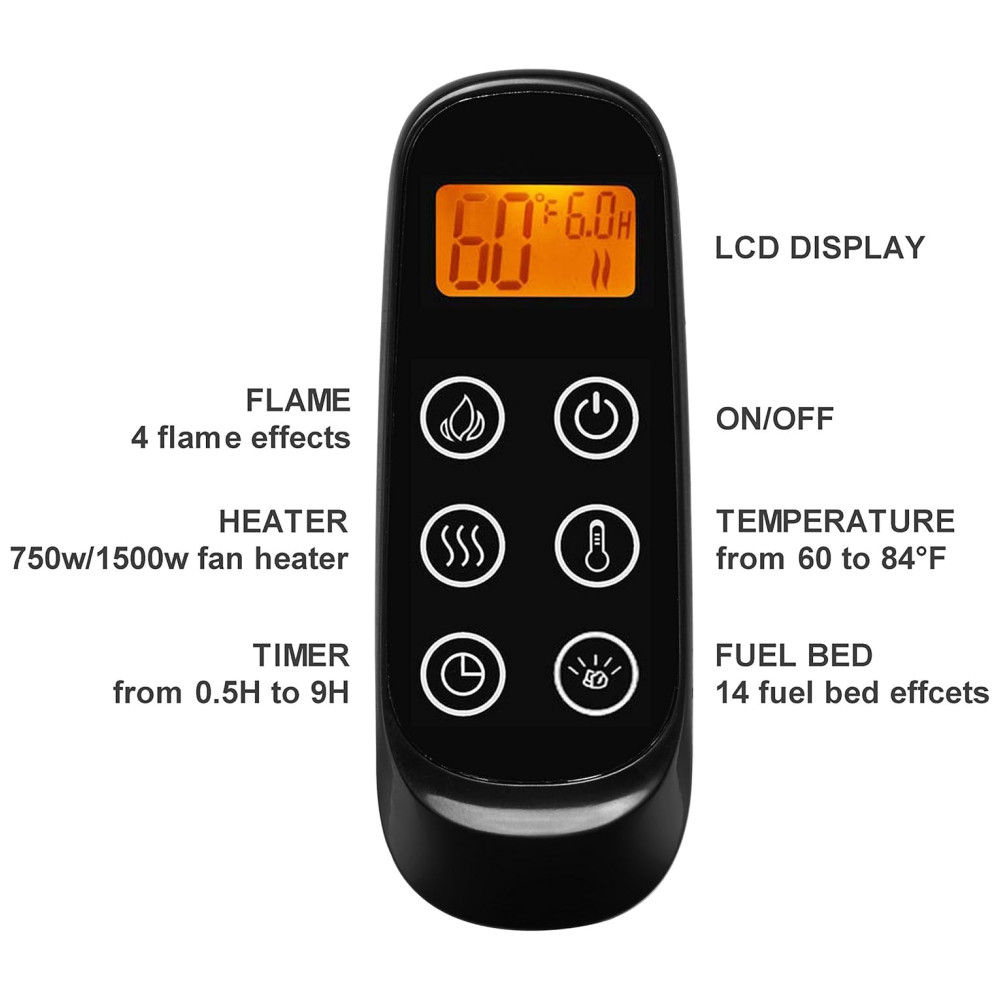 O timer de contagem regressiva pode ser configurado para desligar a lareira de 30 minutos a 9 horas.