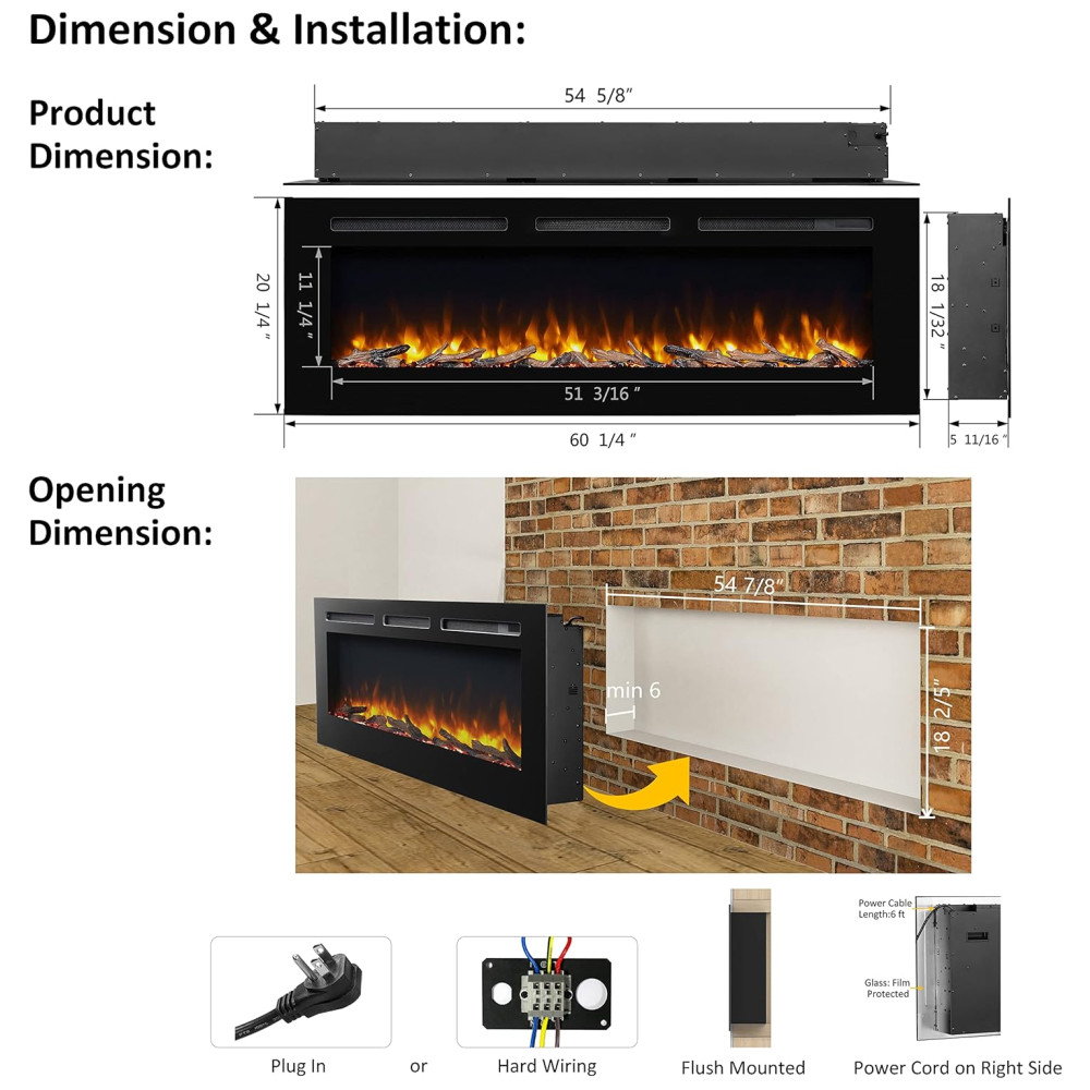 Apresentando a Lareira Elétrica de Embutir PuraFlame Alice INSTALAÇÃO Instalação embutida na parede SOMENTE, NÃO pode ser pendurada na parede ou utilizada de forma independente, perfeita para paredes de 5 x 15 cm.