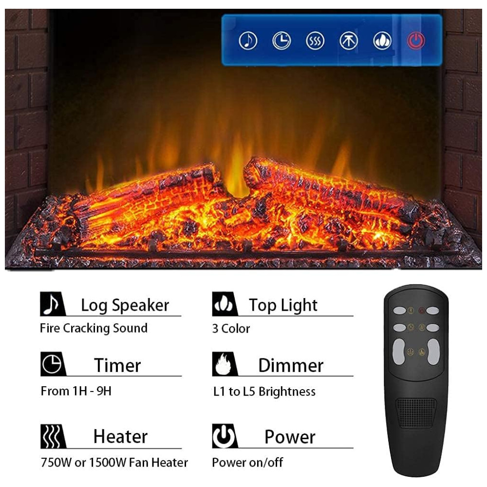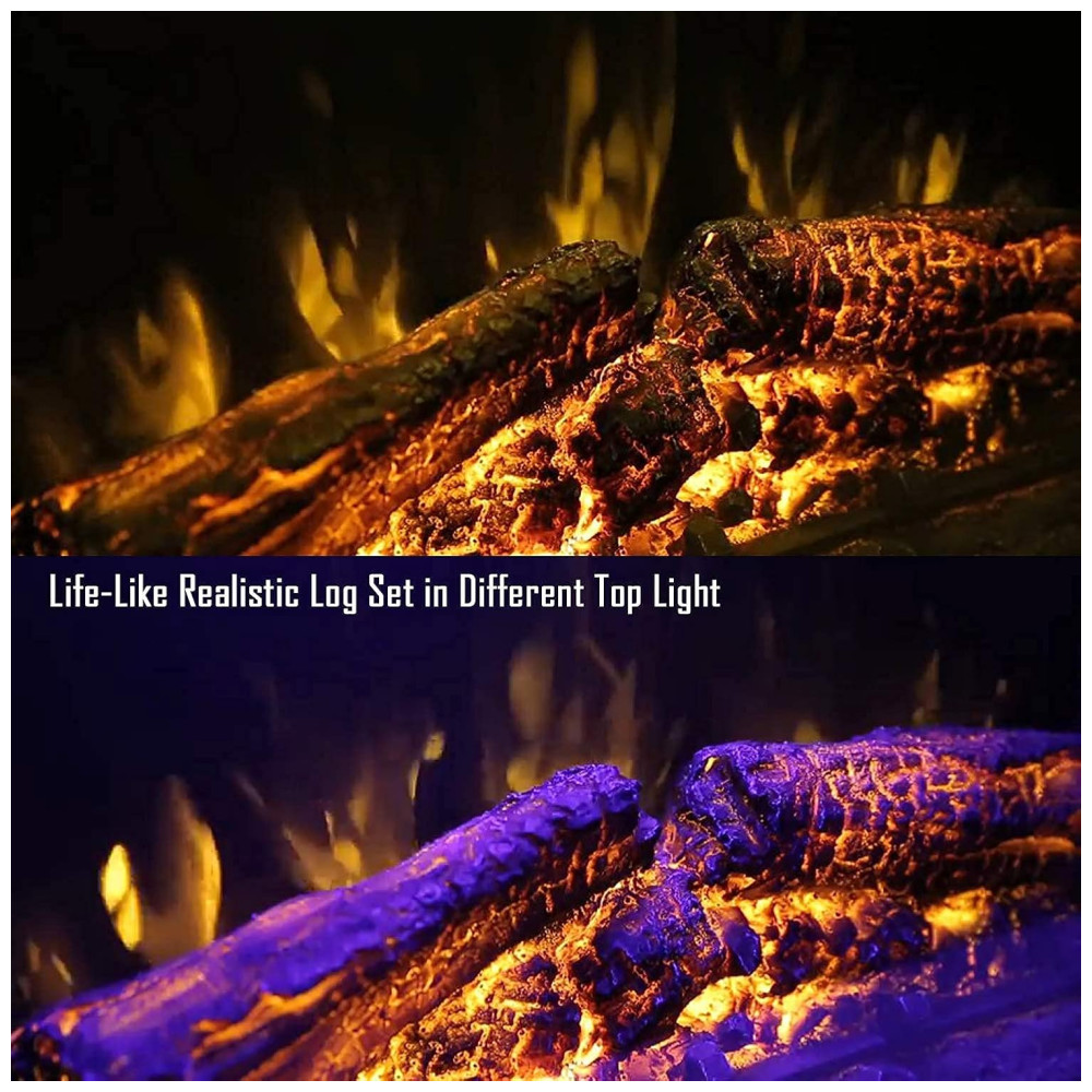 Modos Multi Chama Criado com LOGS DE RESINA LIFE LIKE EMBER BED com 3 cores de luz de atmosfera e 5 intensidades de chama variáveis Estilo retrô de parede de tijolo interior de trê