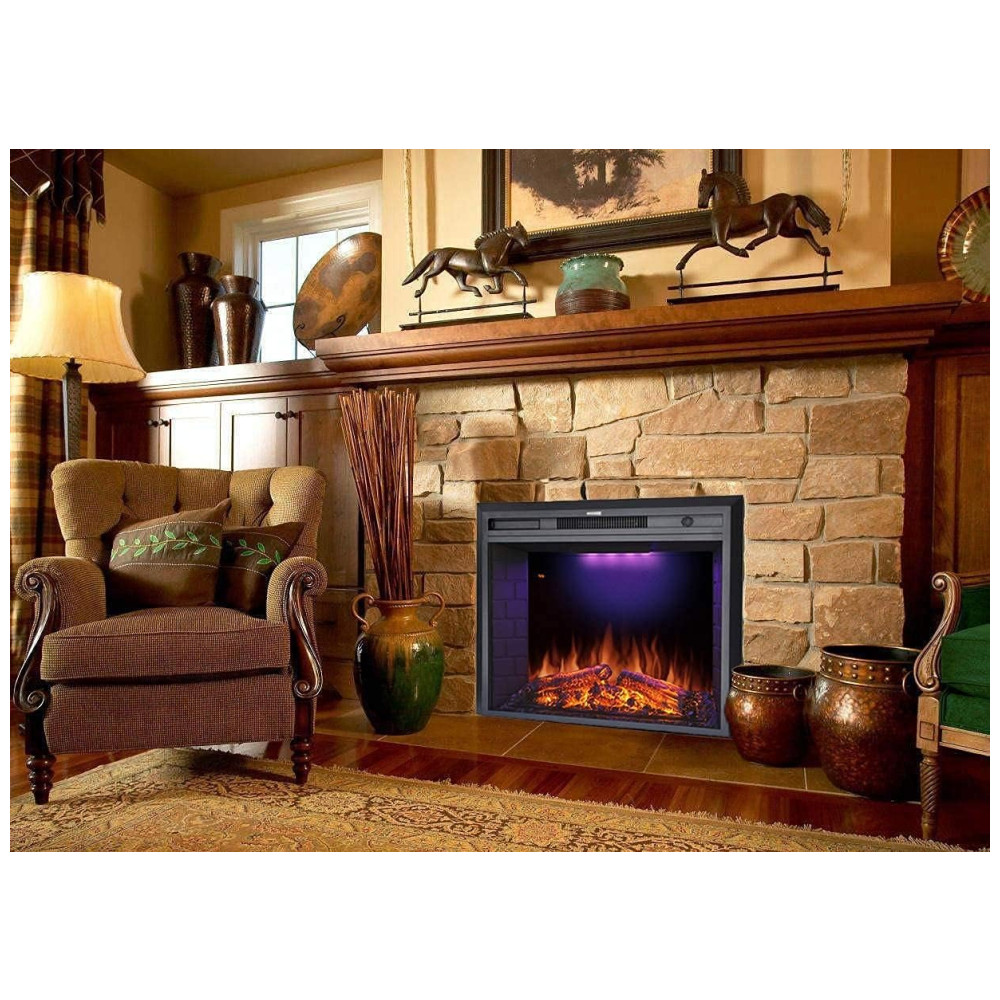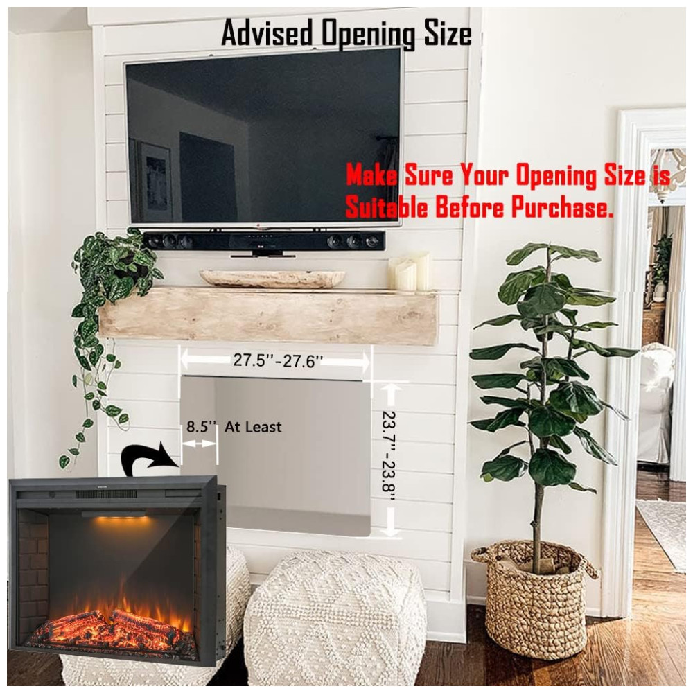 Lareira Elétrica de Embutir A53x90L com Controle Remoto e Som de Fogo, 1500W, 110v, MASARFLAME, Preto: Modos Multi Chama Criado com LOGS DE RESINA LIFE LIKE EMBER BED com 3 cores de luz de atmosfera e 5 intensidades de chama variáveis Estilo retrô de parede de tijolo interior de três lados, ótimo substituto para lareira antiga existente.