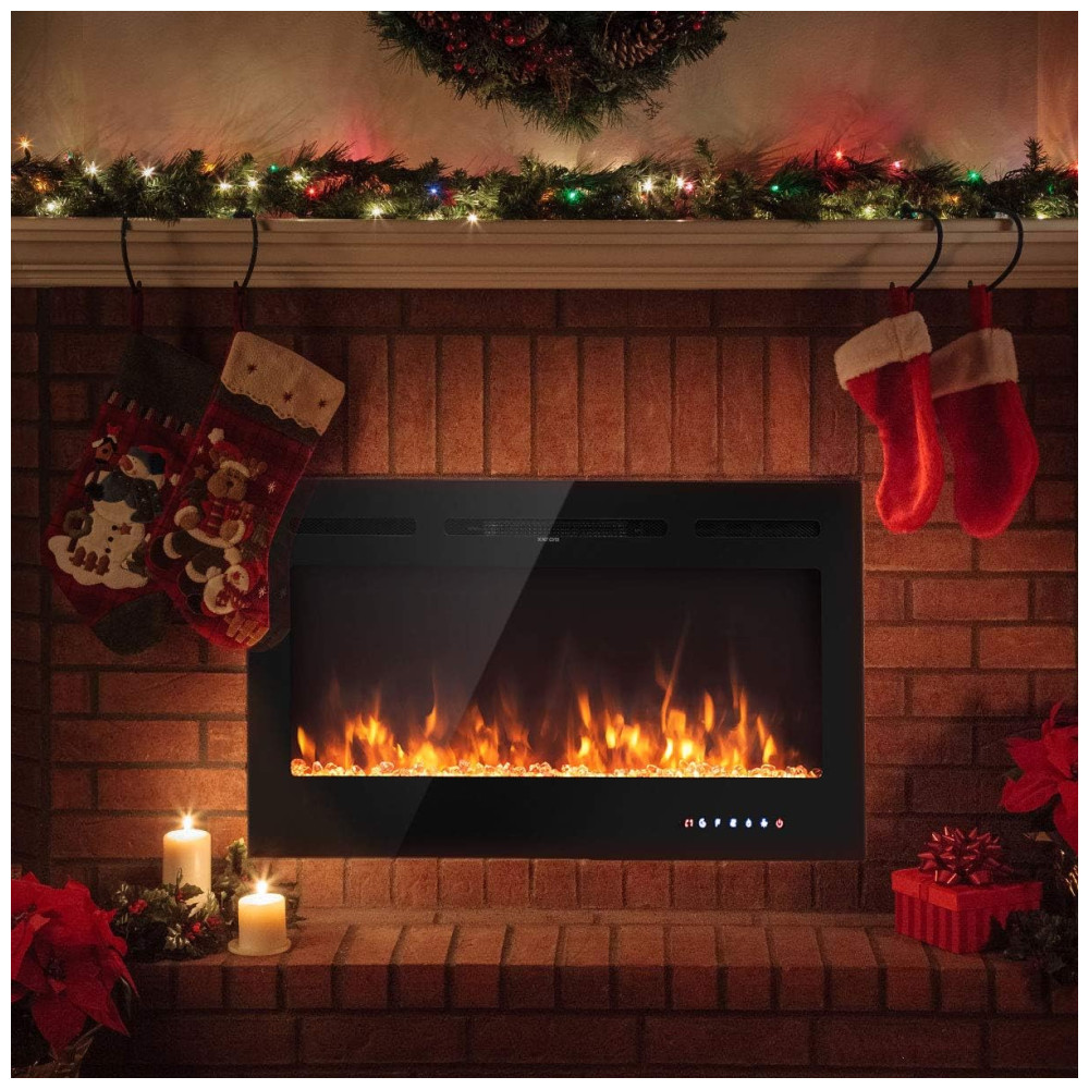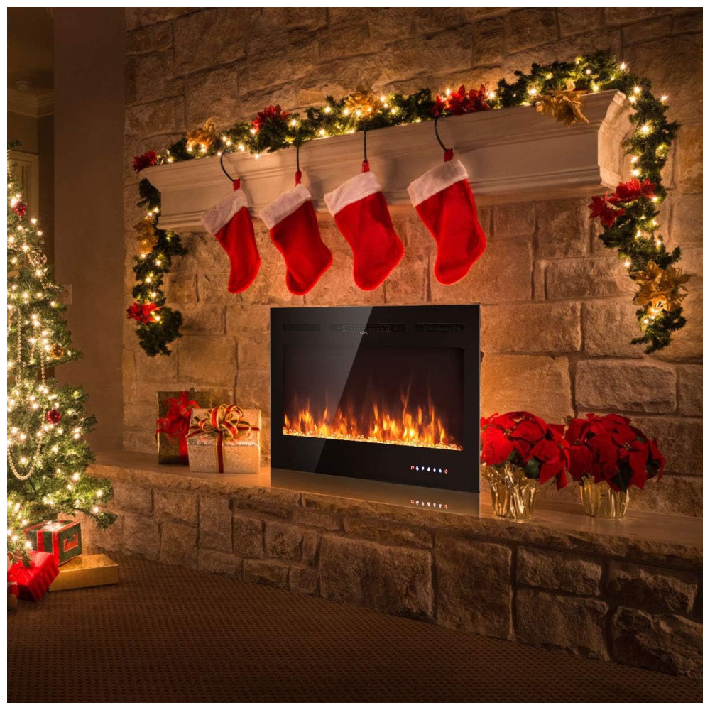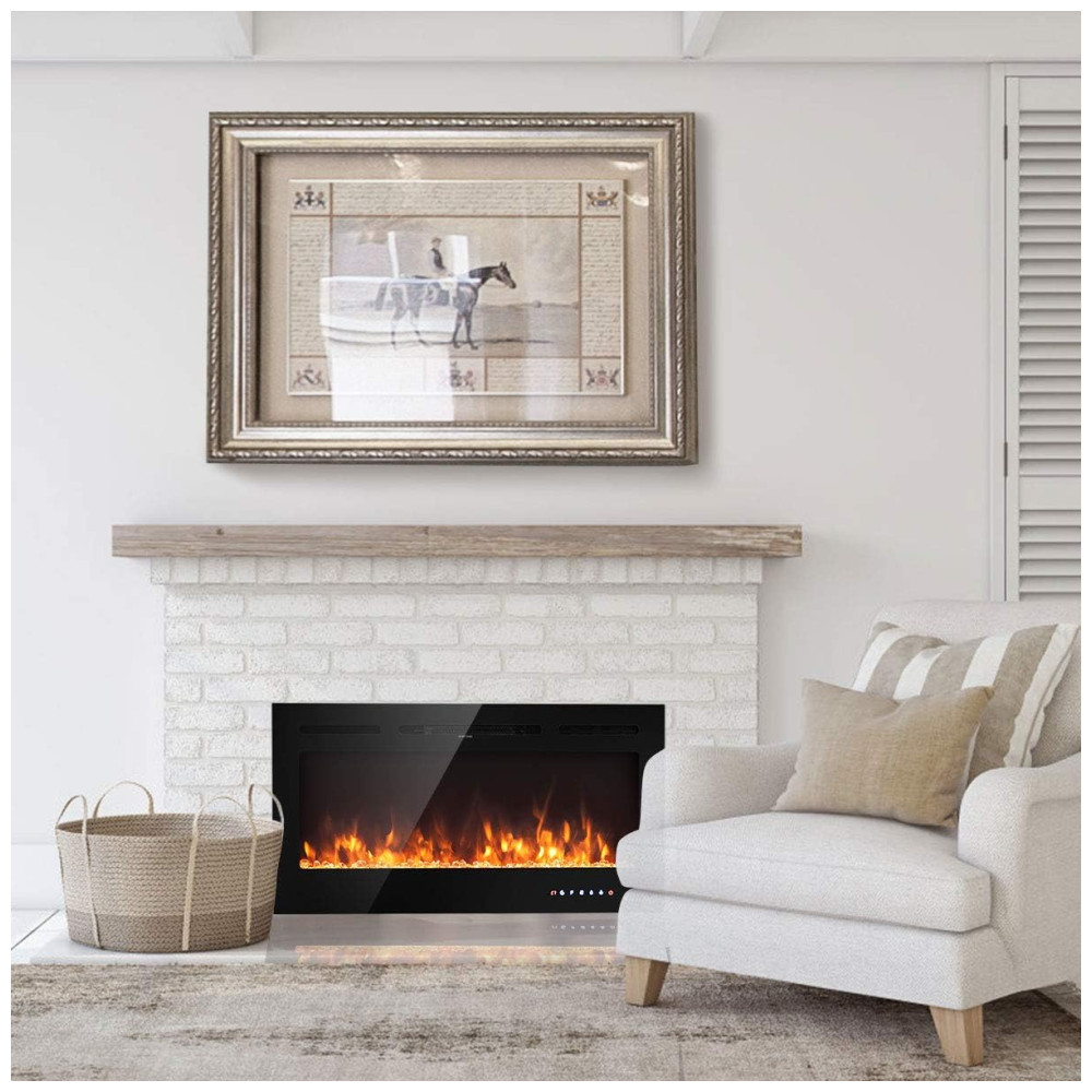 Esta lareira elétrica embutida é uma adição moderna e elegante para qualquer ambiente. Com uma simulação realista de chamas multicoloridas, ela cria uma atmosfera acolhedora sem a&