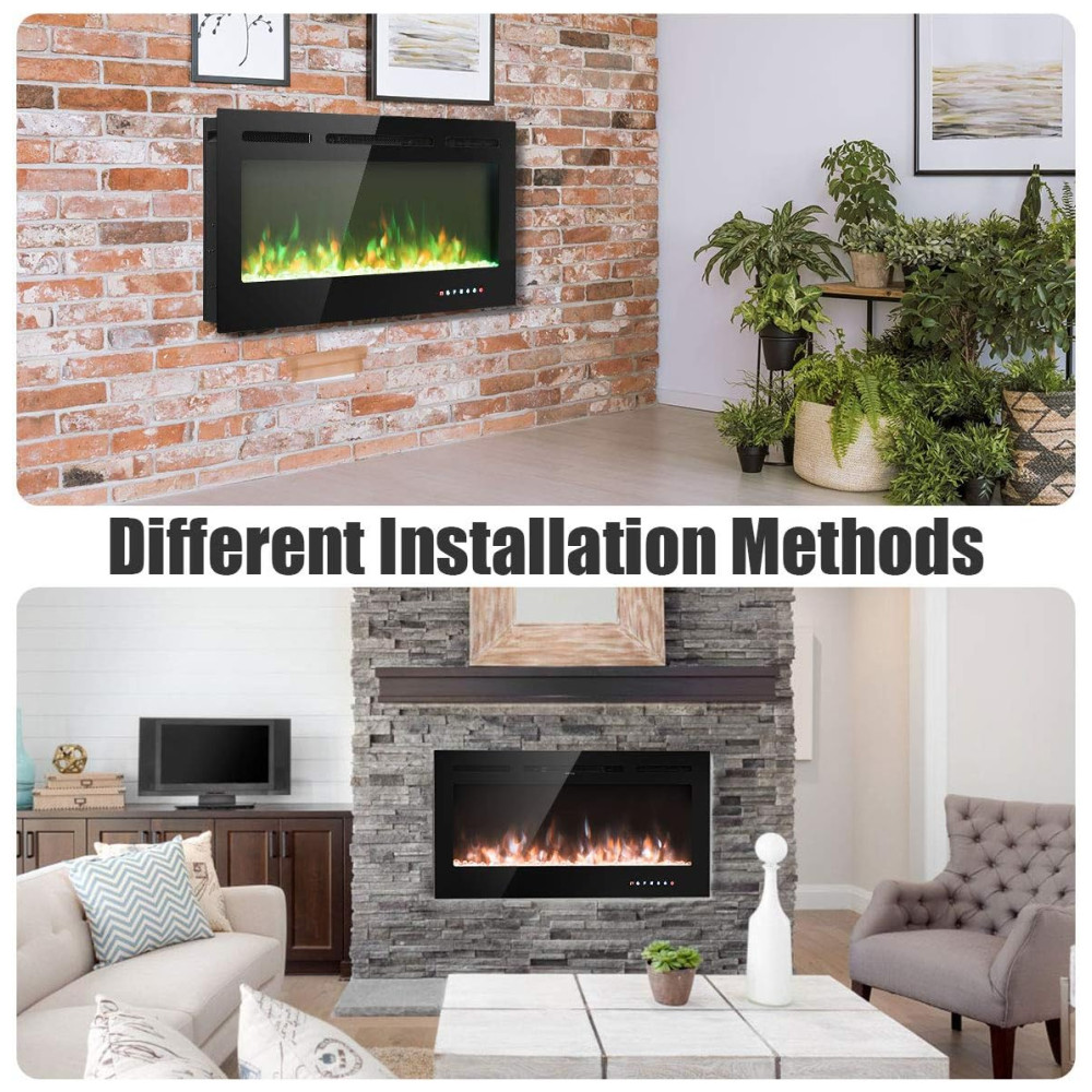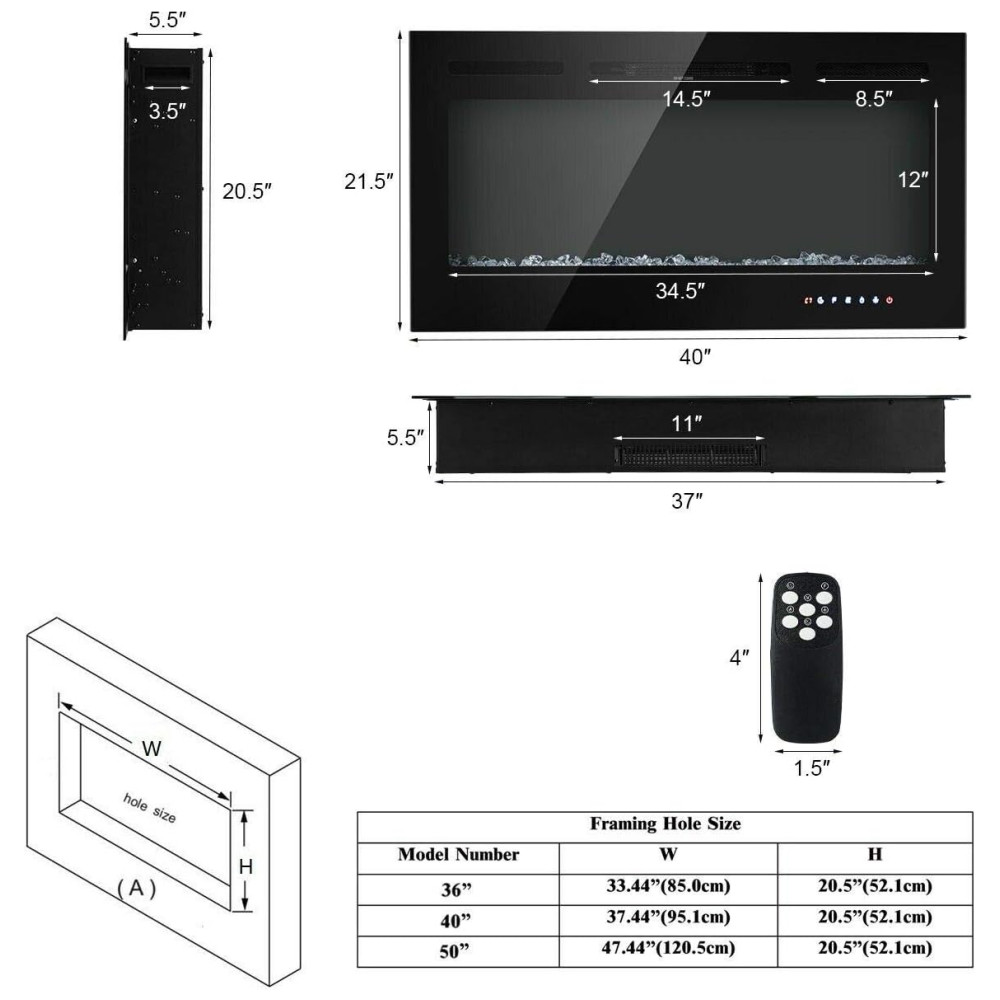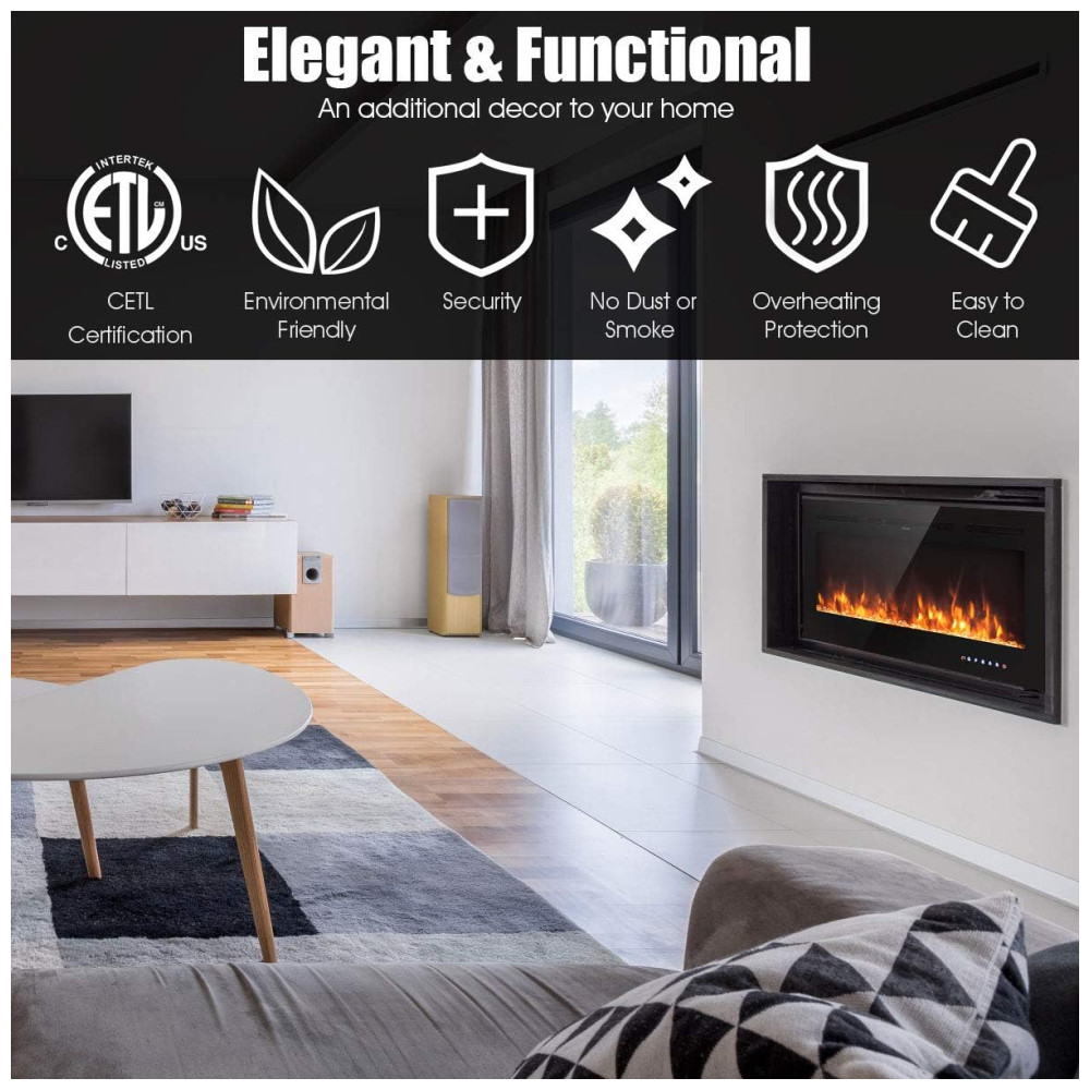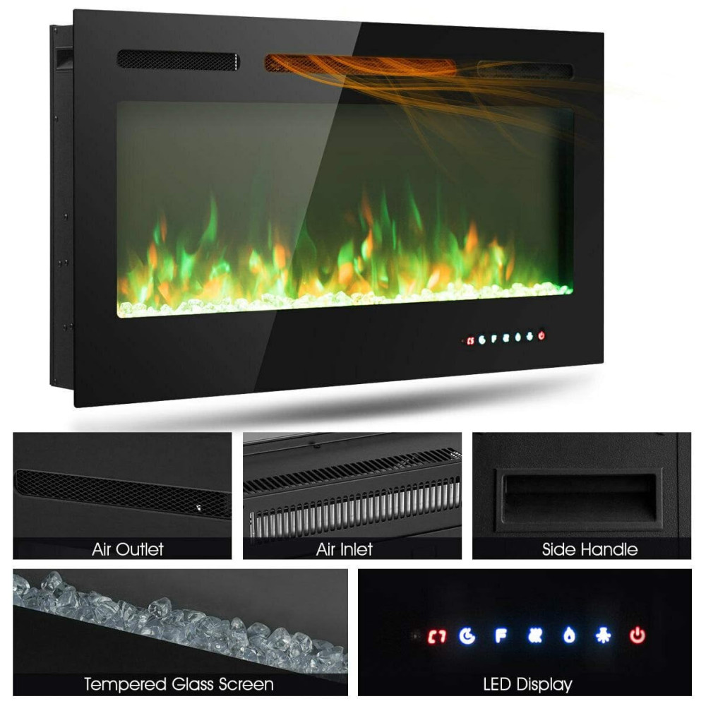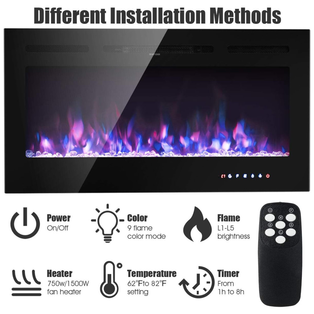 Lareira Elétrica de Embutir A54x101L cm com 9 Cores de Chamas, Controle de Temperatura, Temporizador e Controle Digital, 110V 1500W, Tangkula, Preta