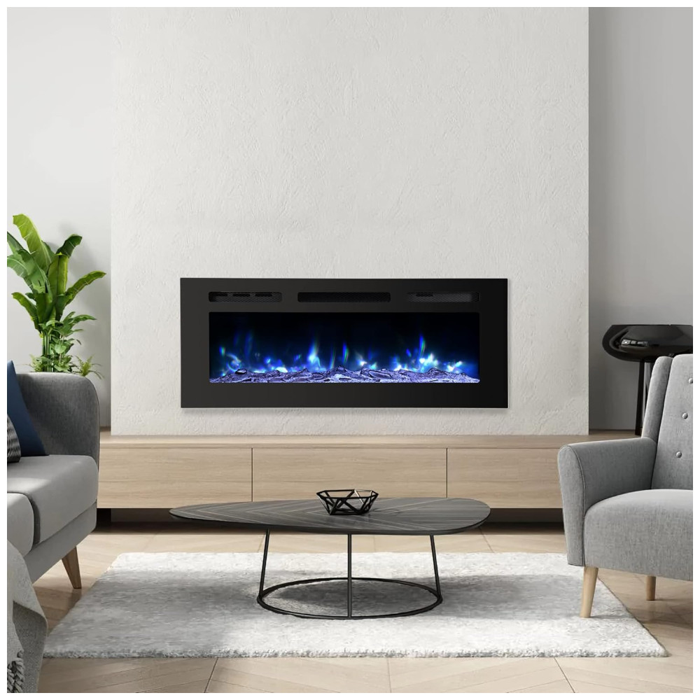 Lareira Elétrica de Embutir A54x101L com Controle Remoto e Luz de LED, 1500W, 110v, PAOLFOX Electric Fireplace, Preto