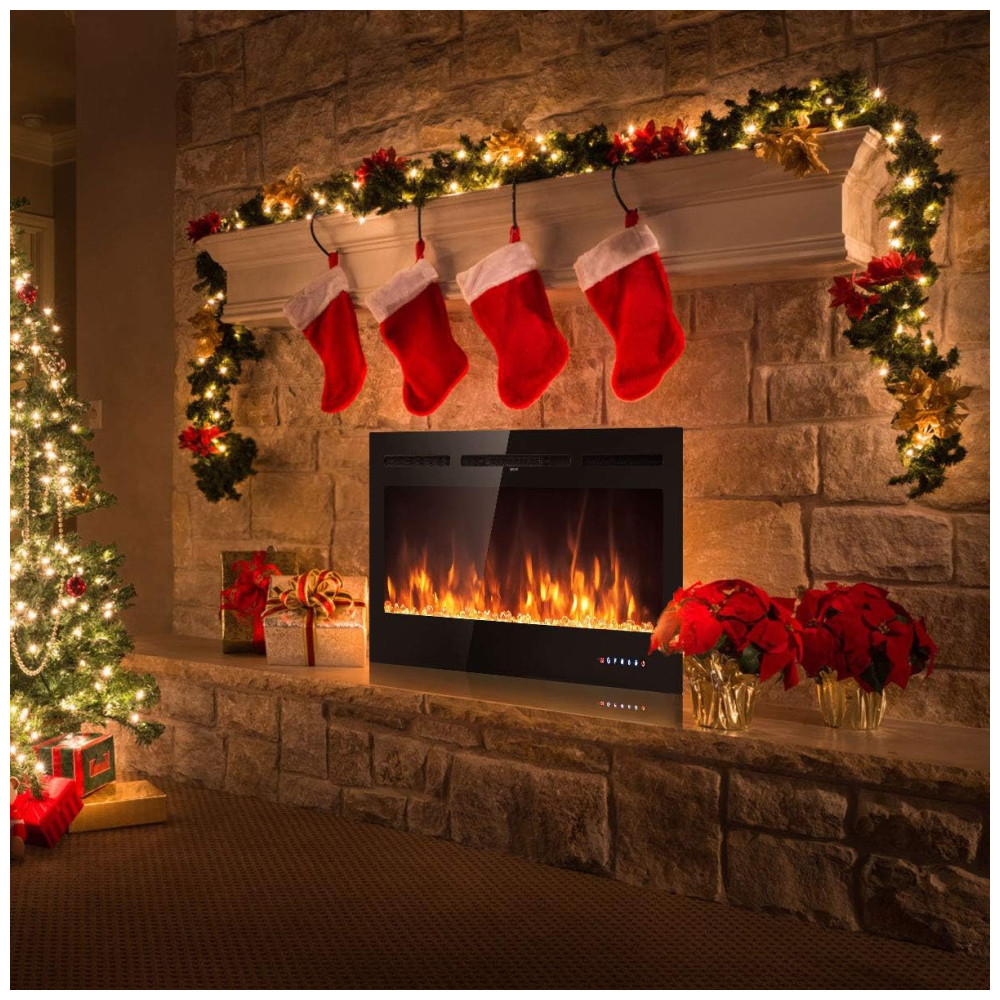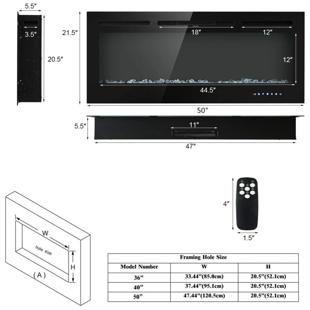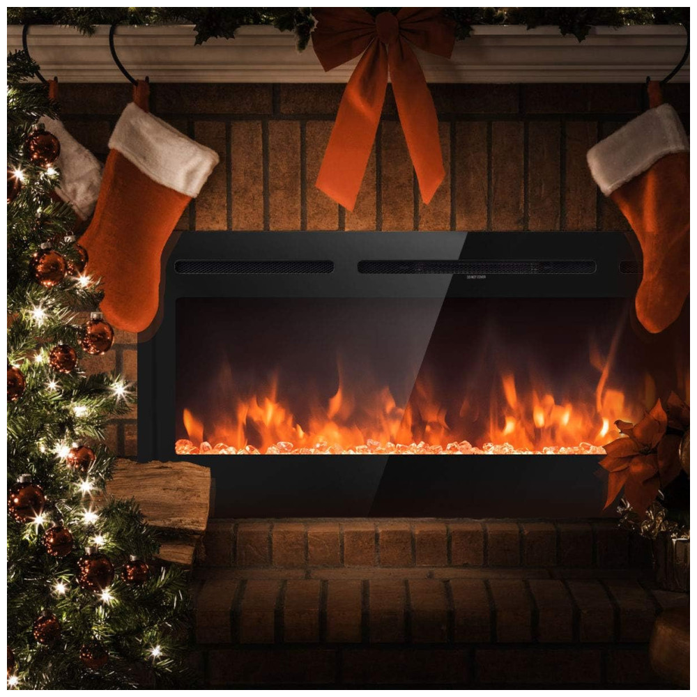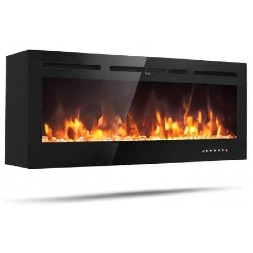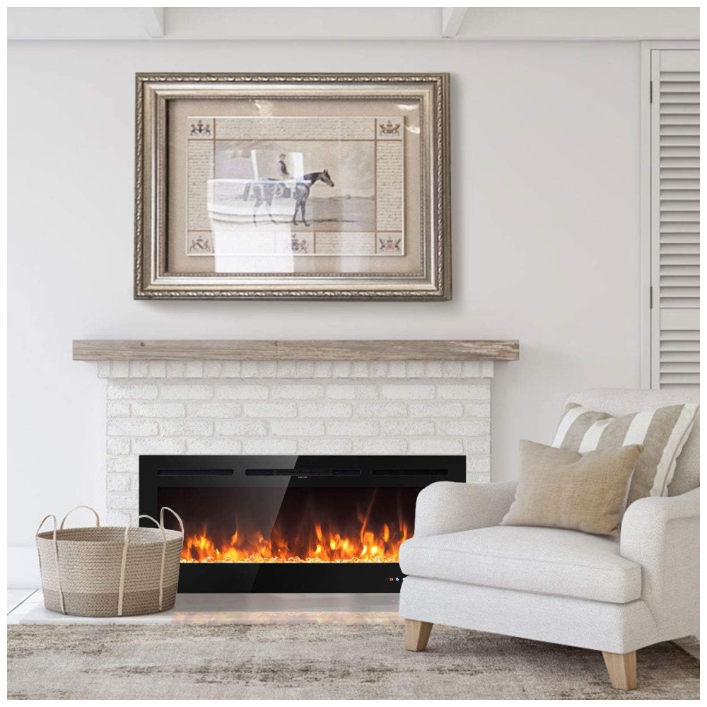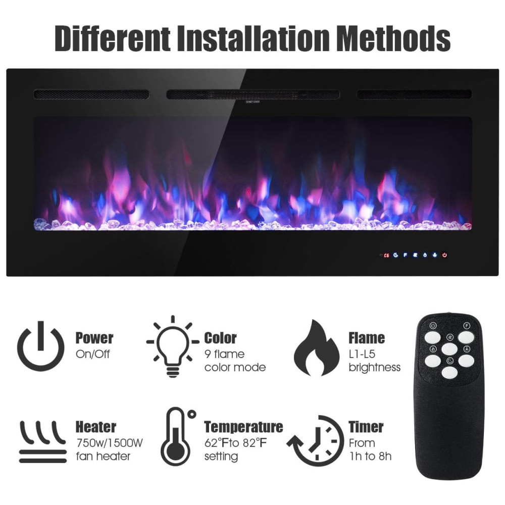 Lareira Elétrica de Embutir A54x127L cm com 9 Cores de Chamas, Controle de Temperatura, Temporizador e Controle Digital, 110V 1500W, Tangkula, Preta