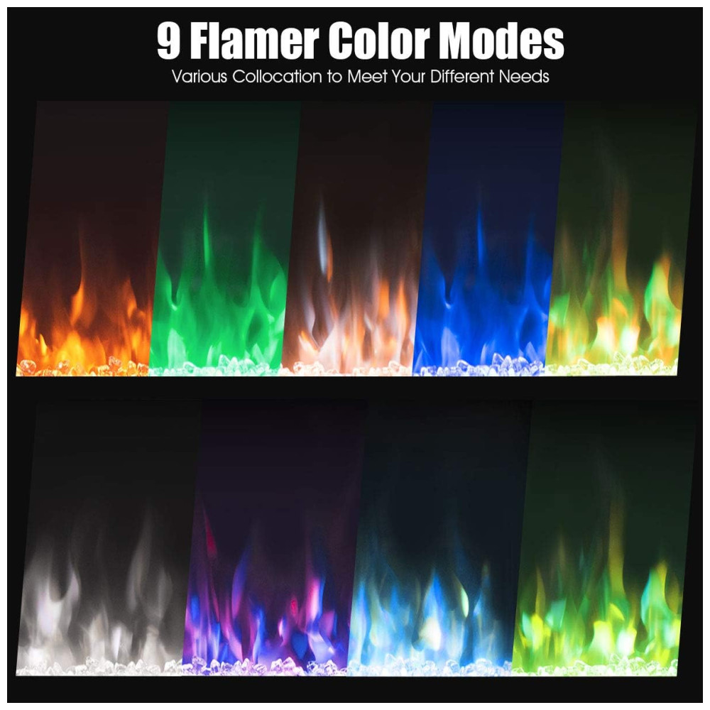 Esta lareira elétrica é uma excelente alternativa à lareira tradicional, pois não produz fumaça nem cinzas. Com luzes LED de alta intensidade, oferece 9 opções de cores para as cha