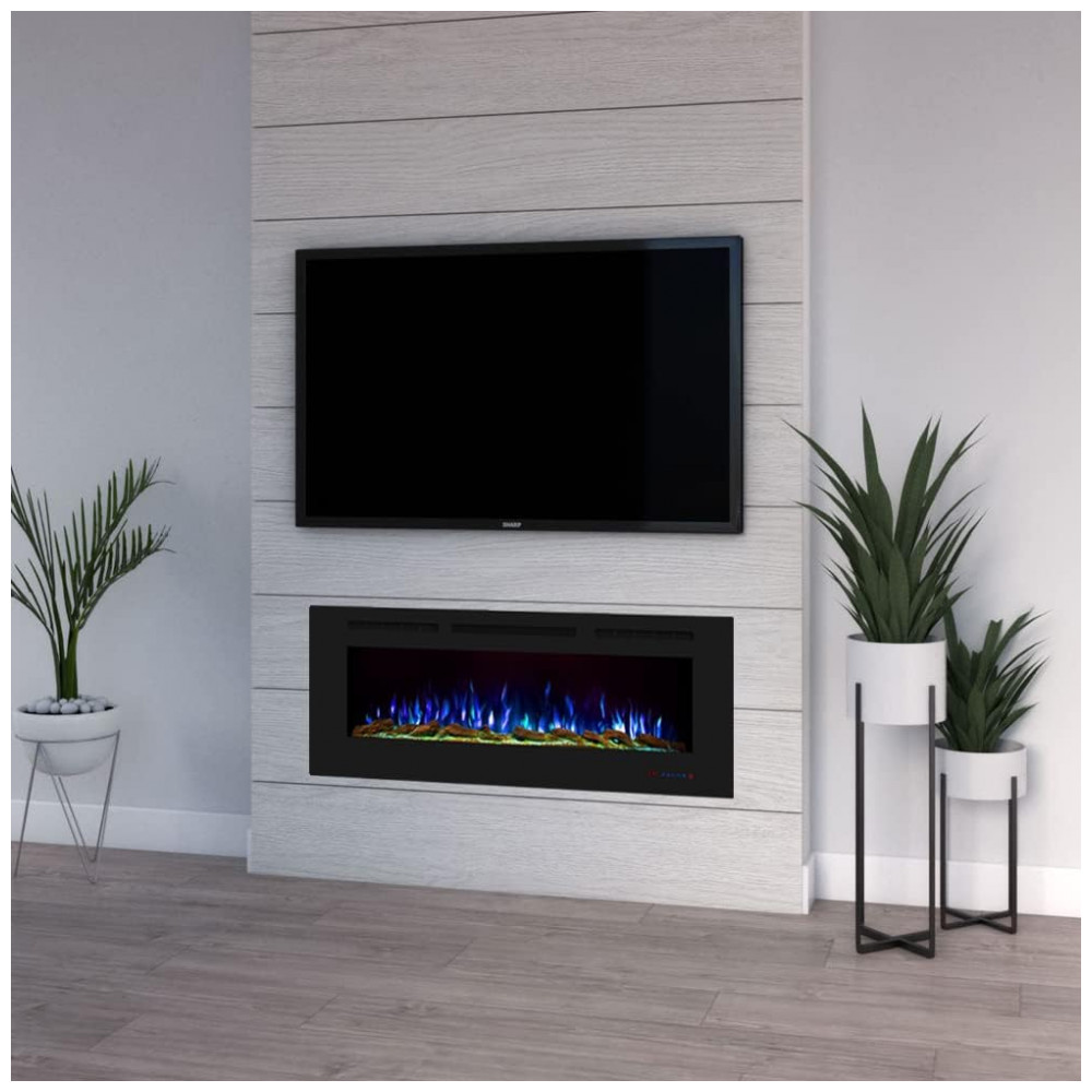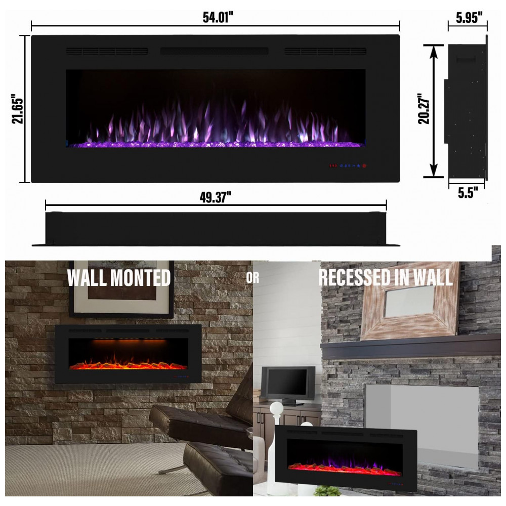 Lareira Elétrica de Embutir A54x137L com Controle Remoto e APP para Celular, 110V, Masarflame, Preta