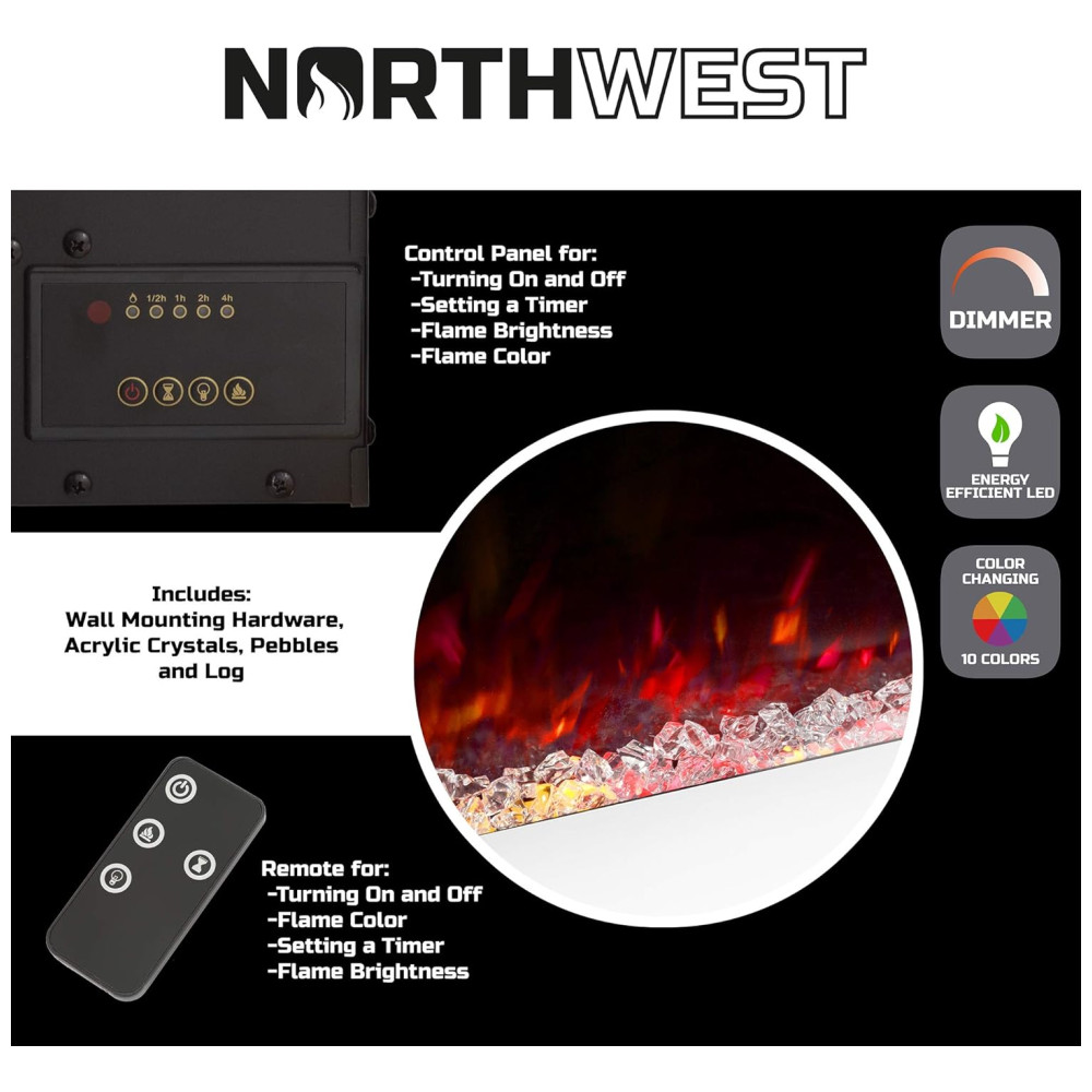 Conheça a Lareira Elétrica de 127 cm Montada na Parede com Chamas LED de 10 Cores, 3 Fundos, Brilho Ajustável e Controle Remoto da Northwest Branca AQUECEDOR DE LAREIRA ELÉTRICA Ad