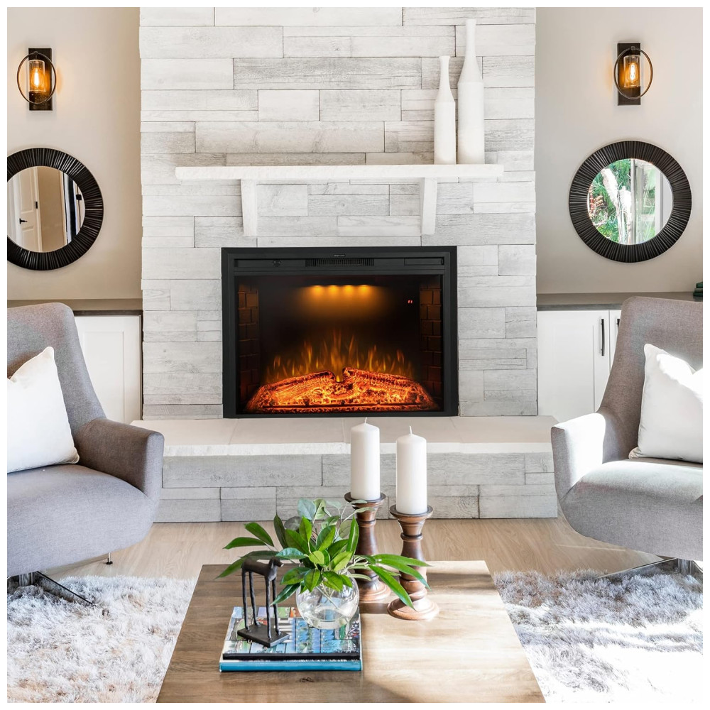 Lareira Elétrica de Embutir A62x78L com Proteção contra Superaquecimento e Chamas Ajustavel, 110V 1500W, Benrocks, Preta: