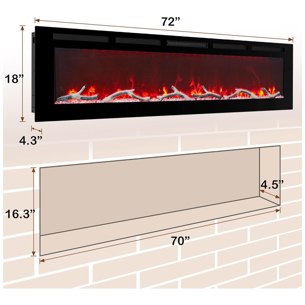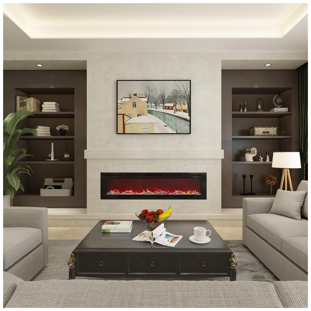 Lareira Elétrica de Embutir Ultrafina A45x182L cm com Controle Remoto, Baixo Ruído e 6 Opções de Chamas, 110V 1500W, MONDAWE, Preta: Este aquecedor elétrico de lareira é uma excelente opção para quem busca aquecimento com eficiência energética.