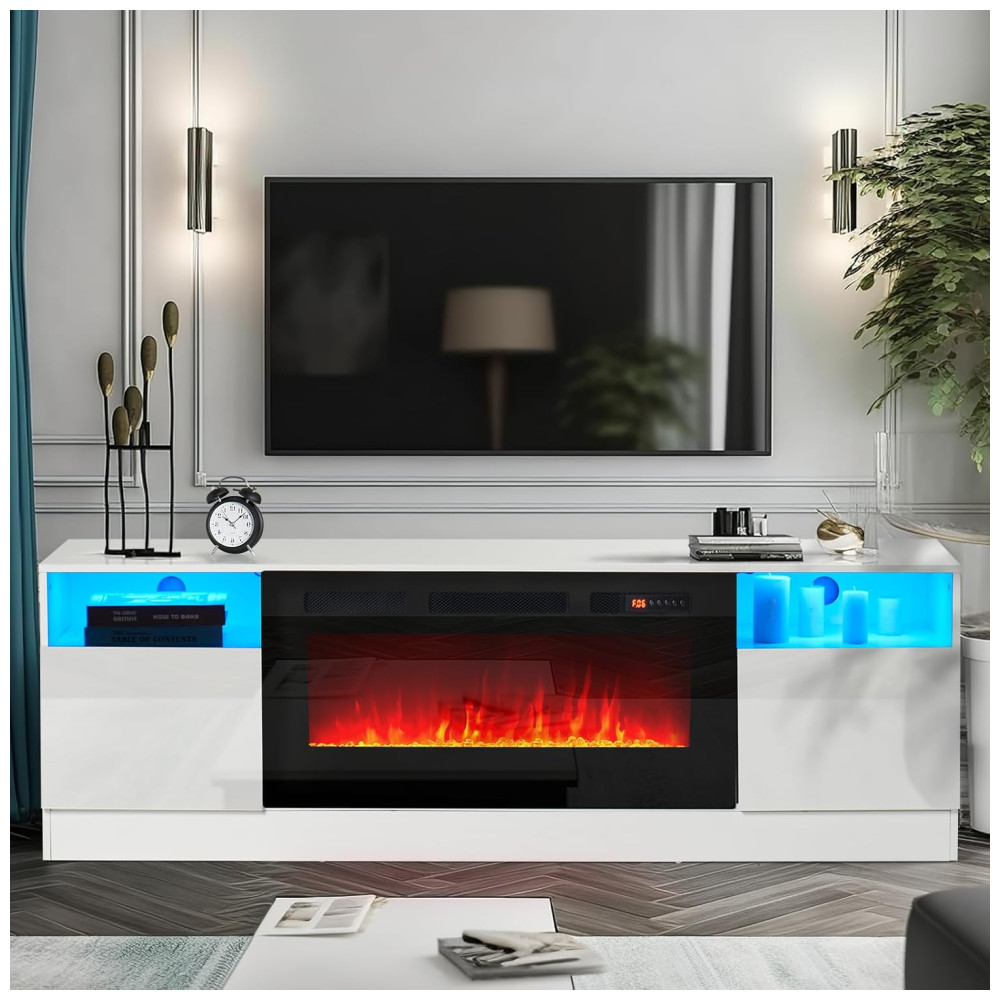 Lareira Elétrica e Suporte de TV com Controle Remoto, 110V, Oneinmil, Branco