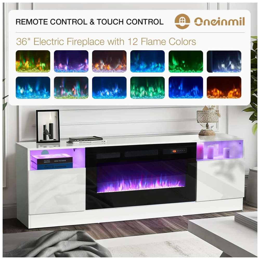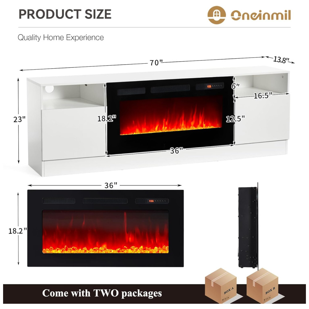 Conheça o Suporte para TV com Lareira Elétrica Oneinmil de 91 cm Design 2 em 1 e Multifuncional Combine um suporte para TV de 178 cm L x 35 cm P x 58 cm A com uma lareira elétrica&