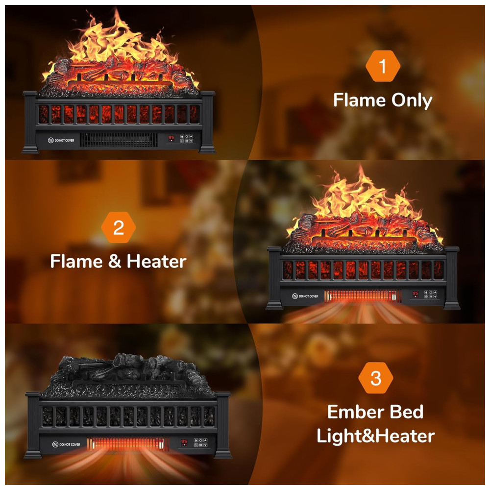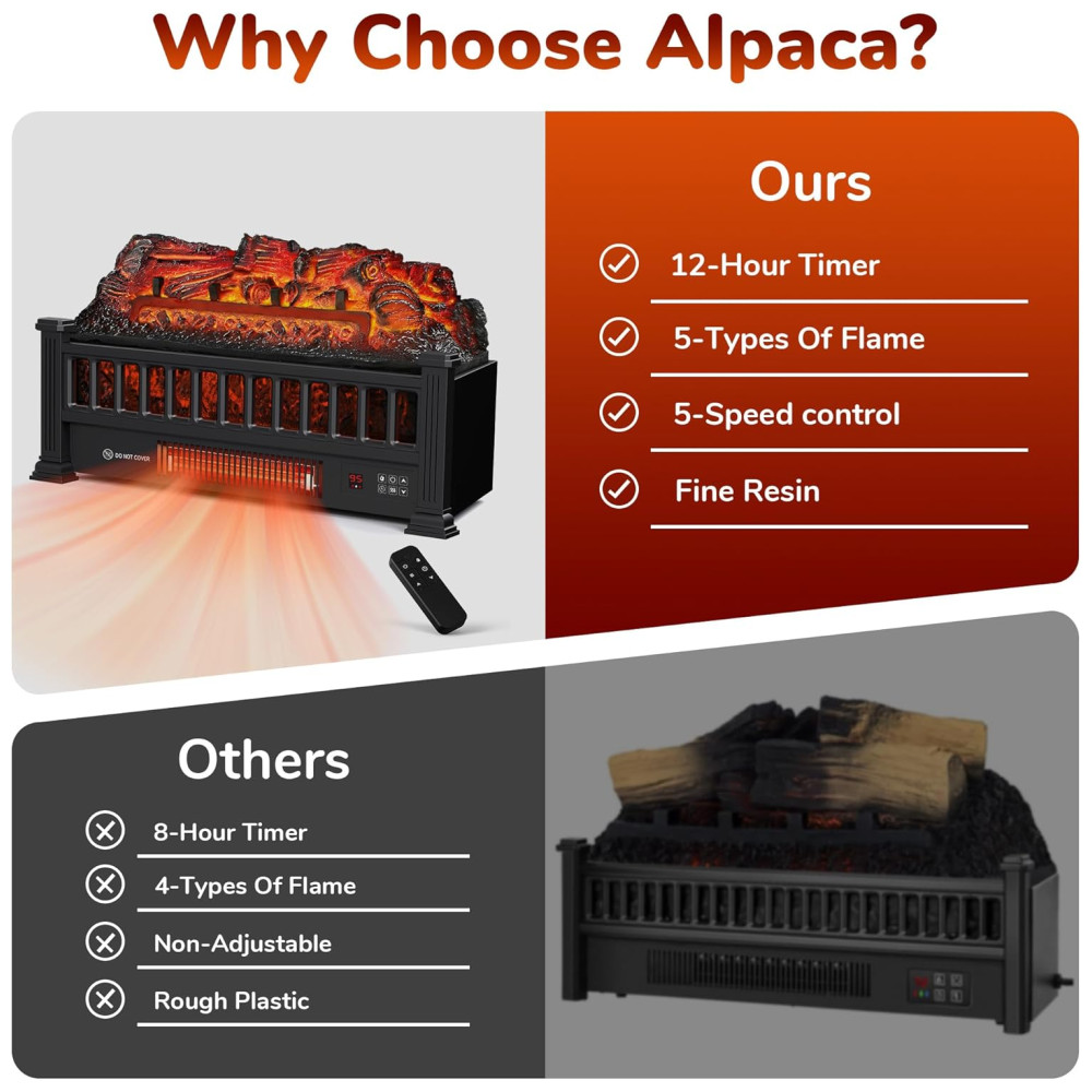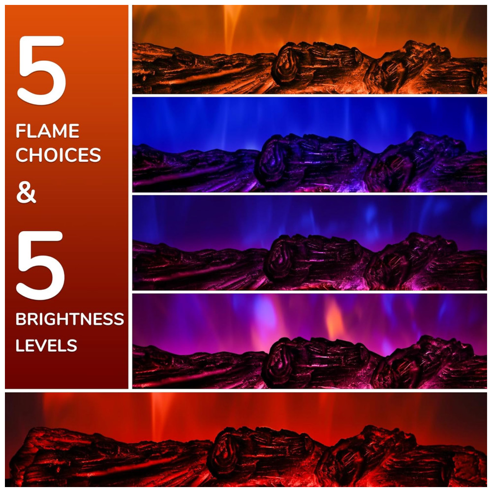Ele apresenta uma chama realista com toras de resina que imitam a aparência de bétula, proporcionando 5 opções de chama e 5 ajustes de velocidade do ar para criar um ambiente romântico e aconchegante.