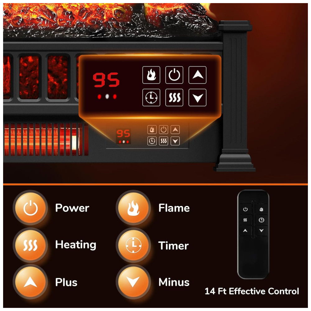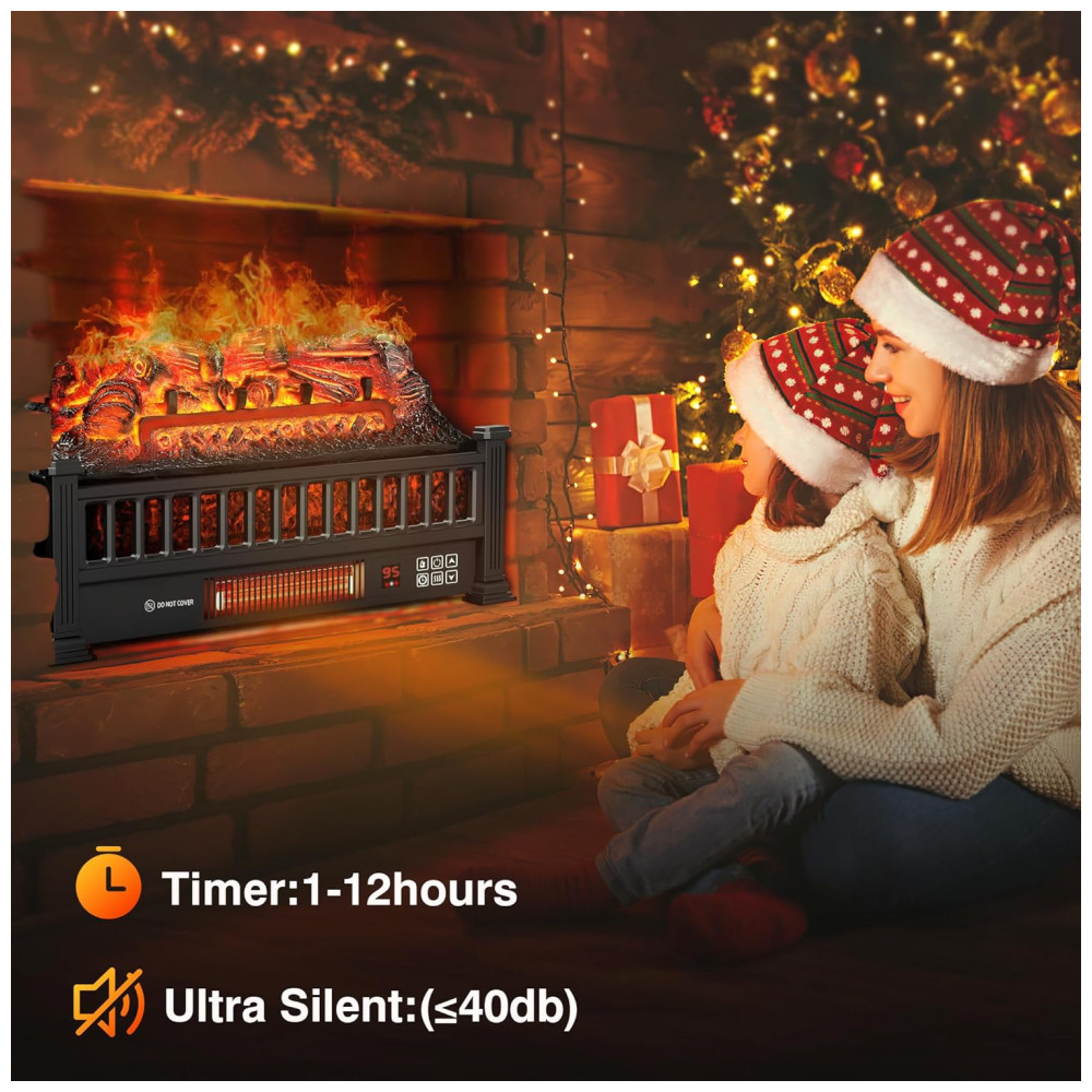 Este aquecedor de lareira elétrica utiliza tecnologia de aquecimento infravermelho com tubo de quartzo, oferecendo até 1500 W de potência para aquecer rapidamente o ambiente em dias frios.