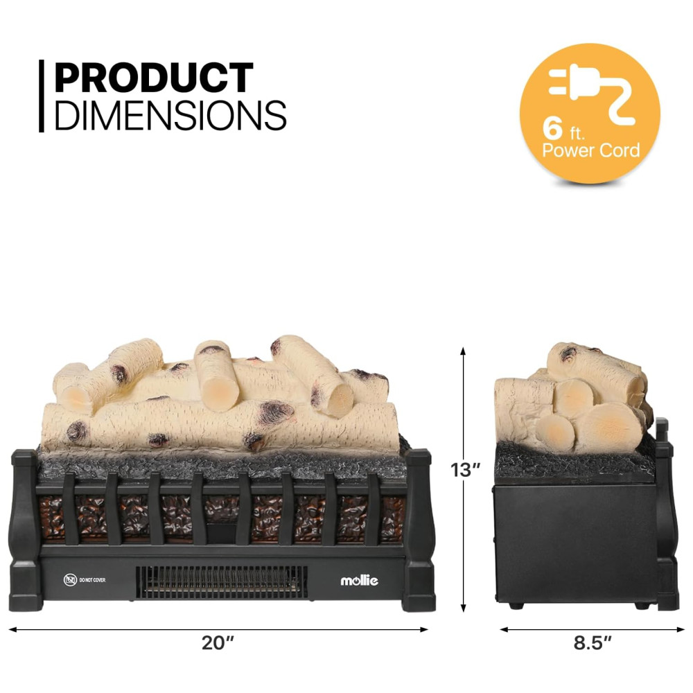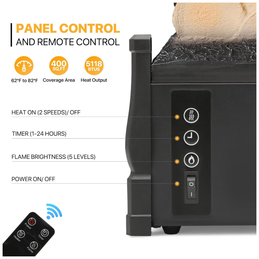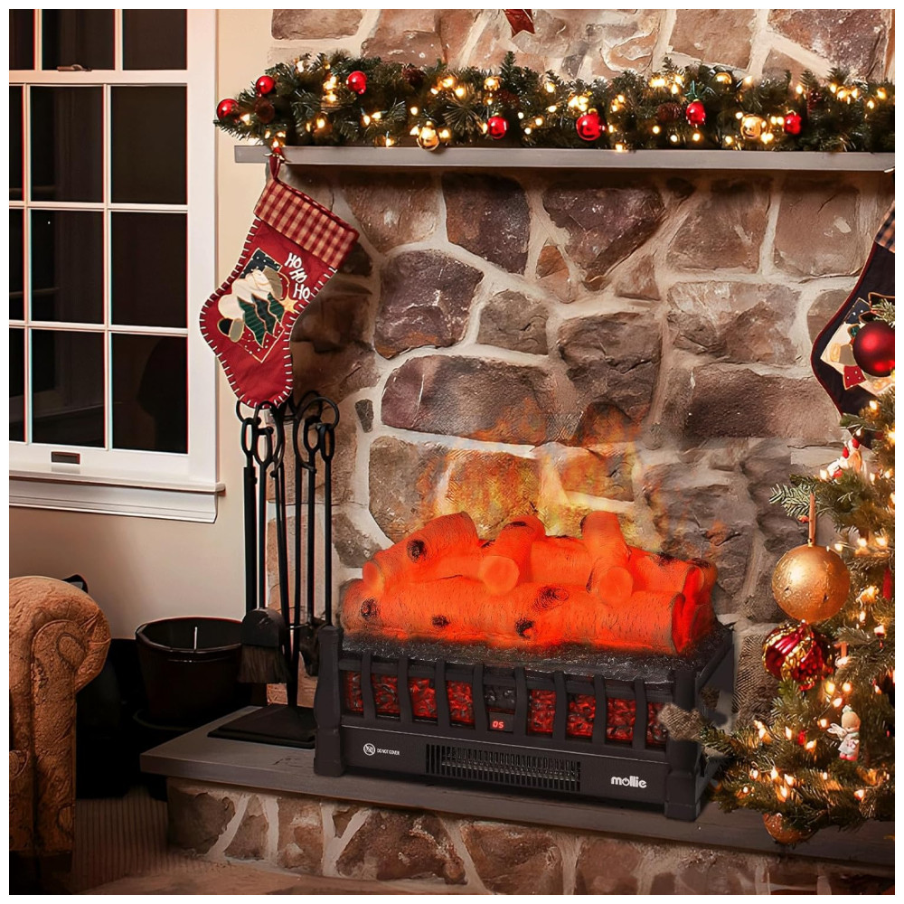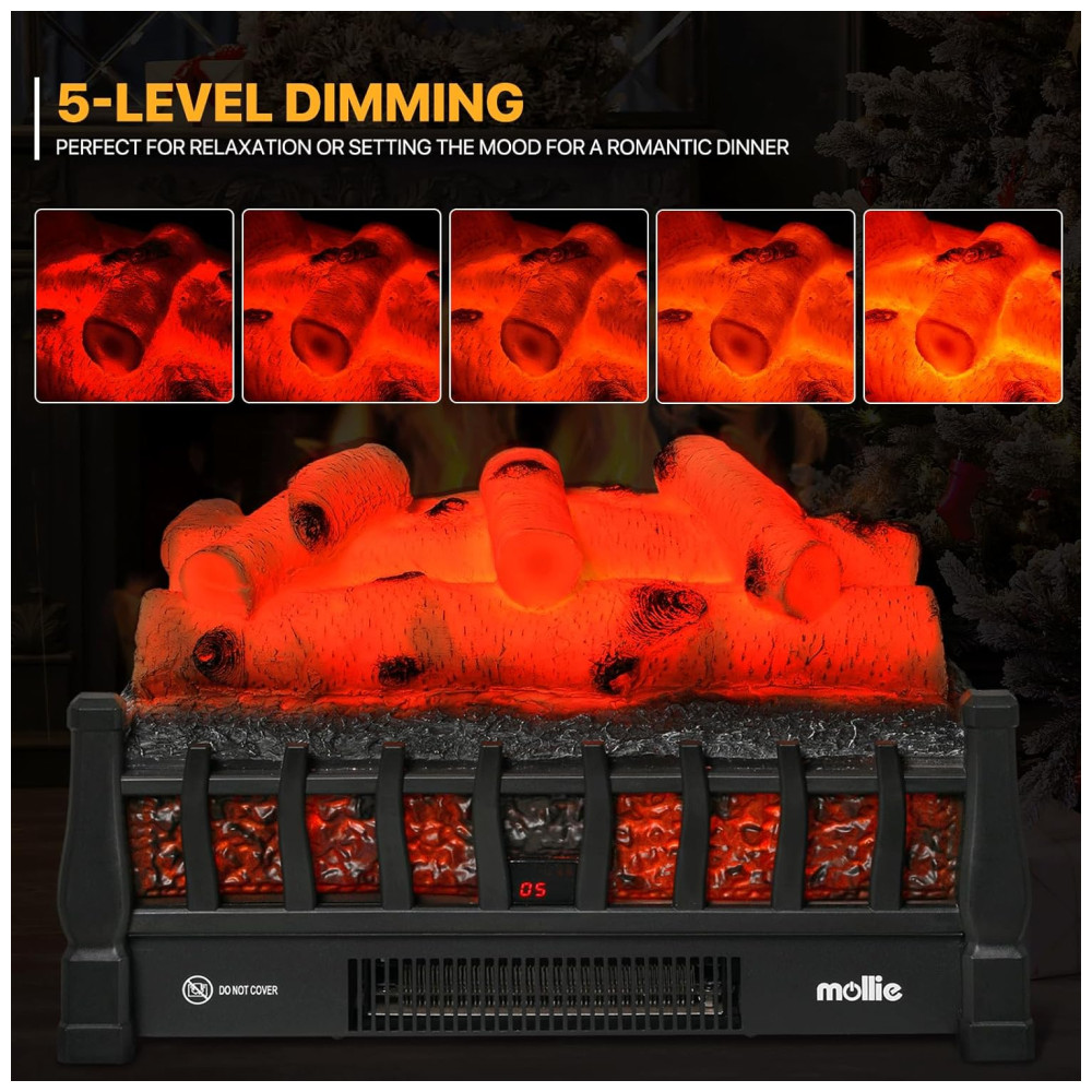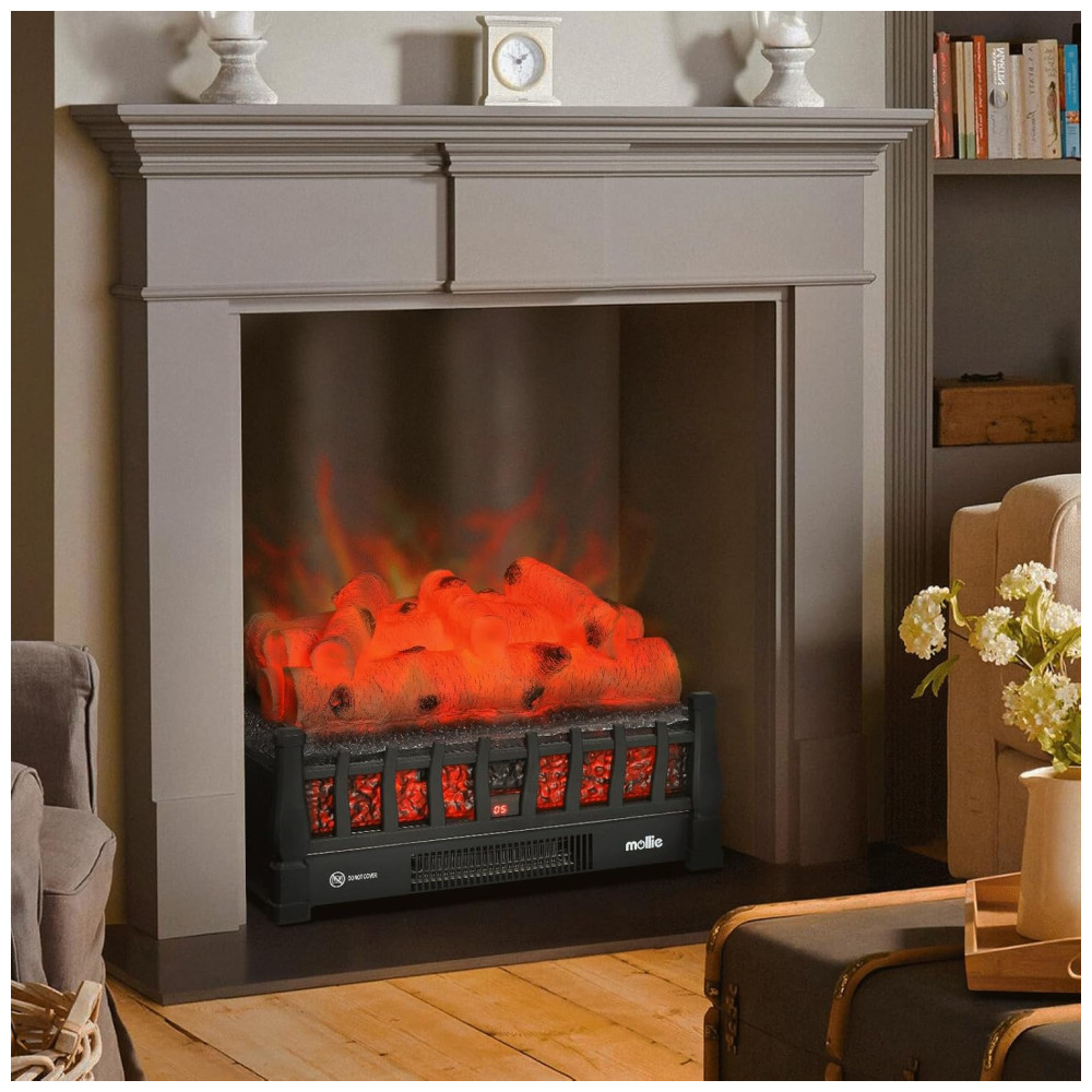 Lareira Elétrica Ecológica 20 50cm com Controle Remoto, Efeito de Chama Realista, e Temporizador, 110V 1500W, Mollie, Preta: