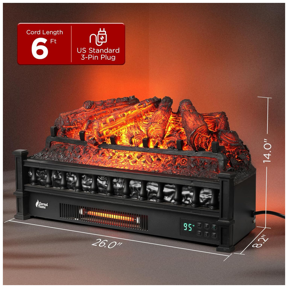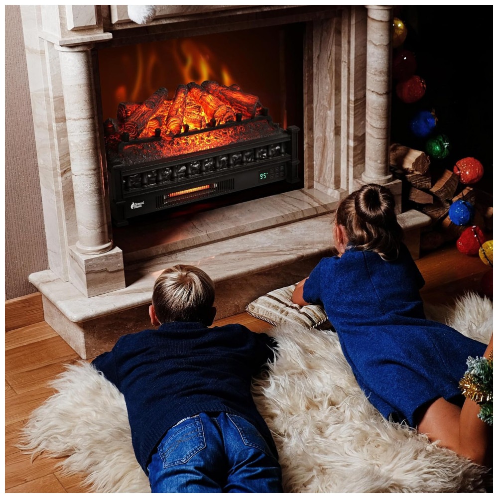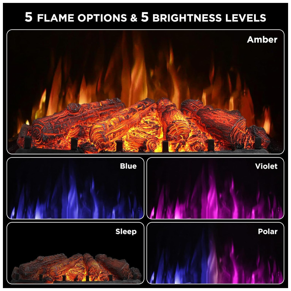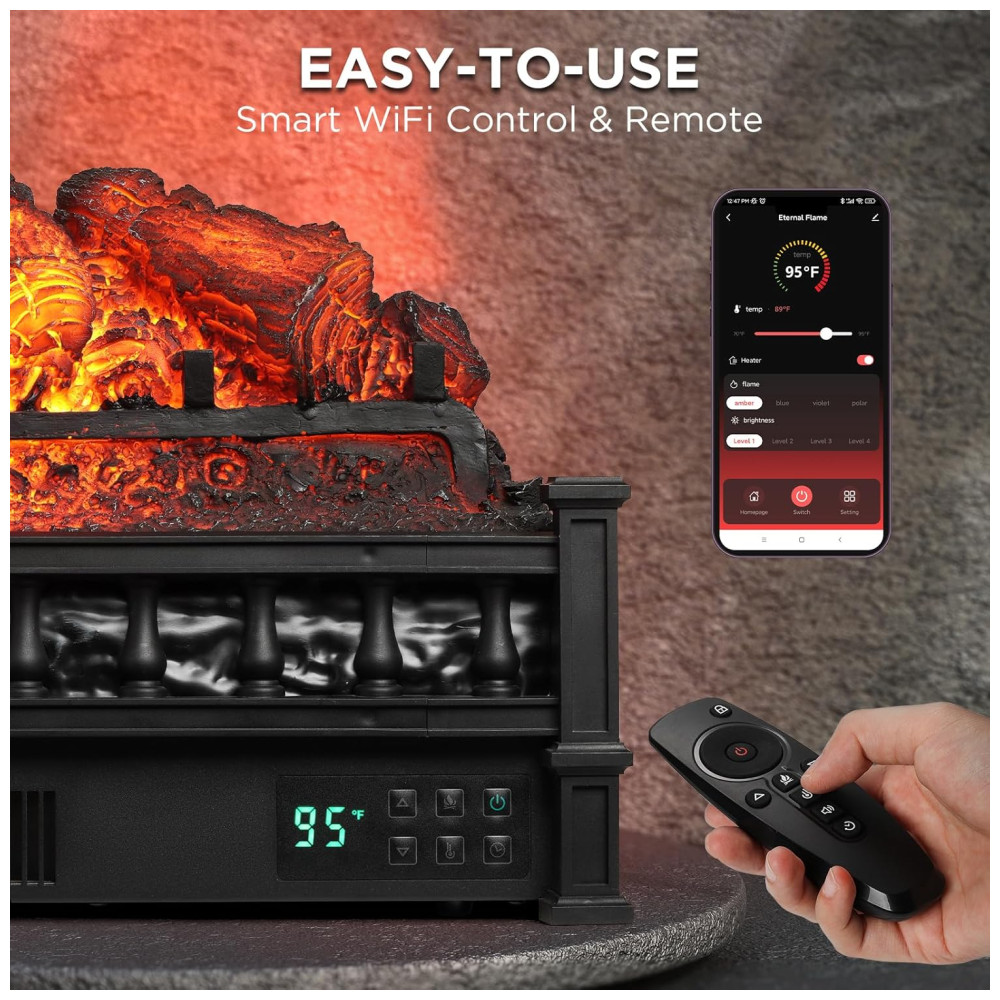 Lareira Elétrica Ecológica 66 cm com Controle Remoto, Toras de Pinho Realista, Cores de Chama Ajustáveis, WiFi e Som Crepitante, 110V 1500W, TURBRO, Preta: