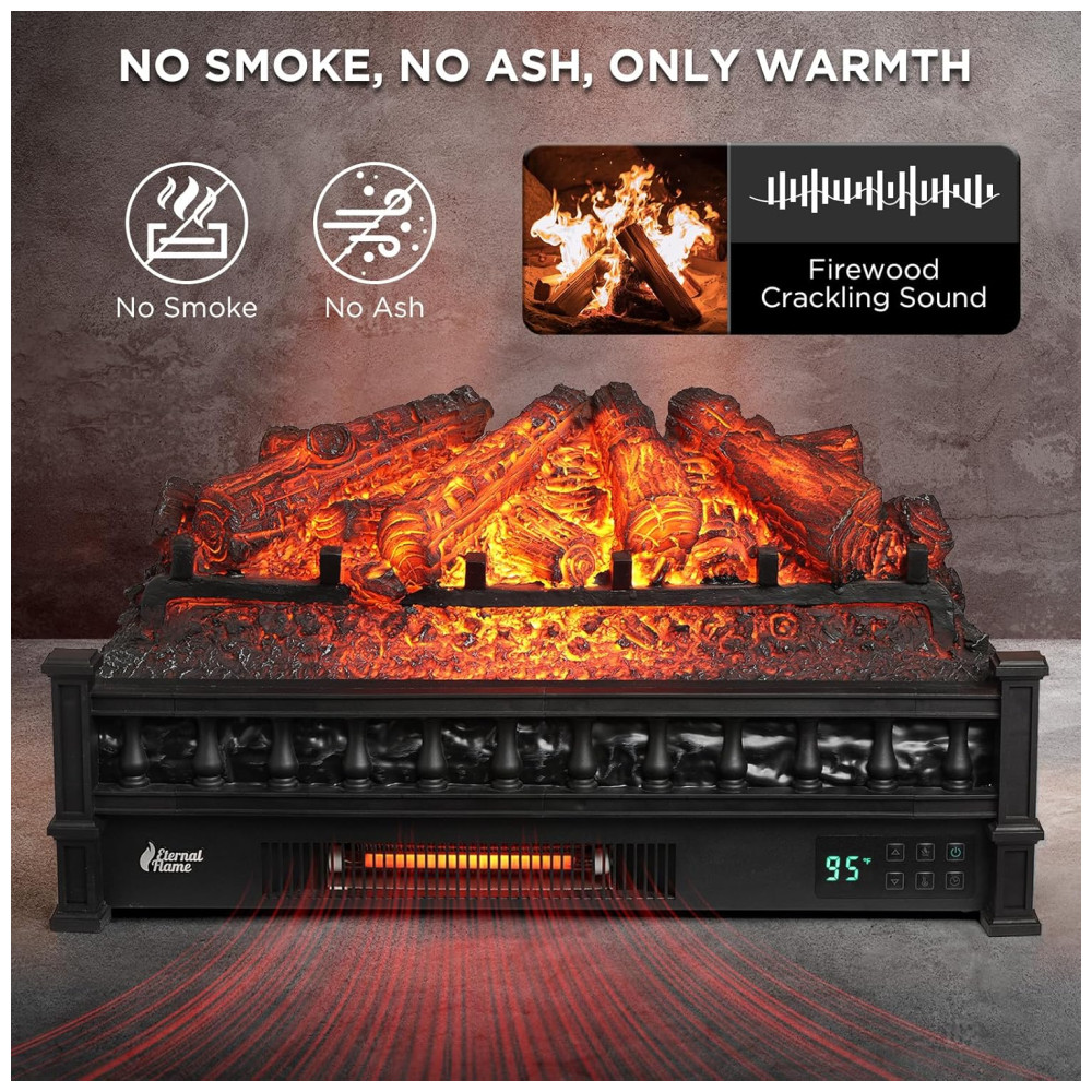 Lareira Elétrica Ecológica 66 cm com Controle Remoto, Toras de Pinho Realista, Cores de Chama Ajustáveis, WiFi e Som Crepitante, 110V 1500W, TURBRO, Preta