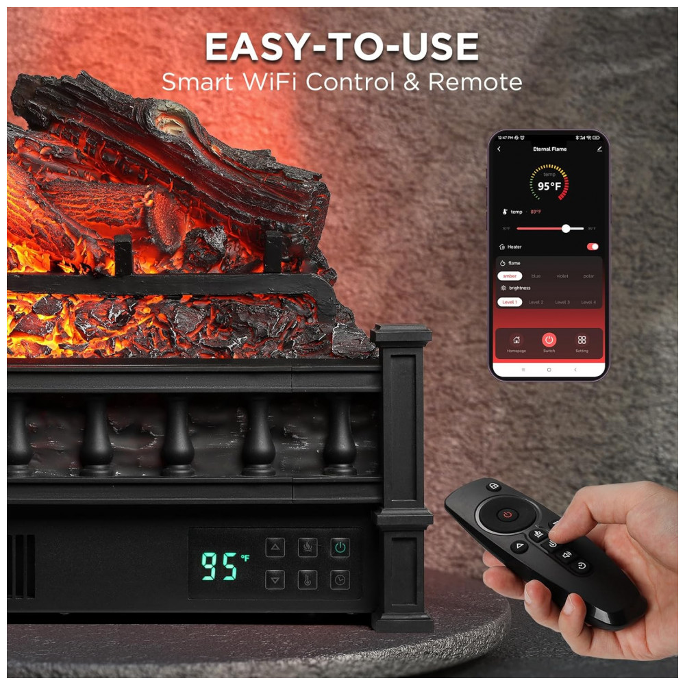 Lareira Elétrica Infravermelha TURBRO Eternal Flame 66 cm WiFi 1500W Preto:
